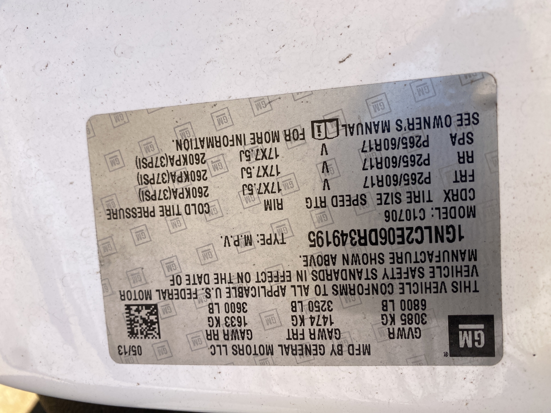 Vehicle ID Number: 1GNLC2E06DR349195