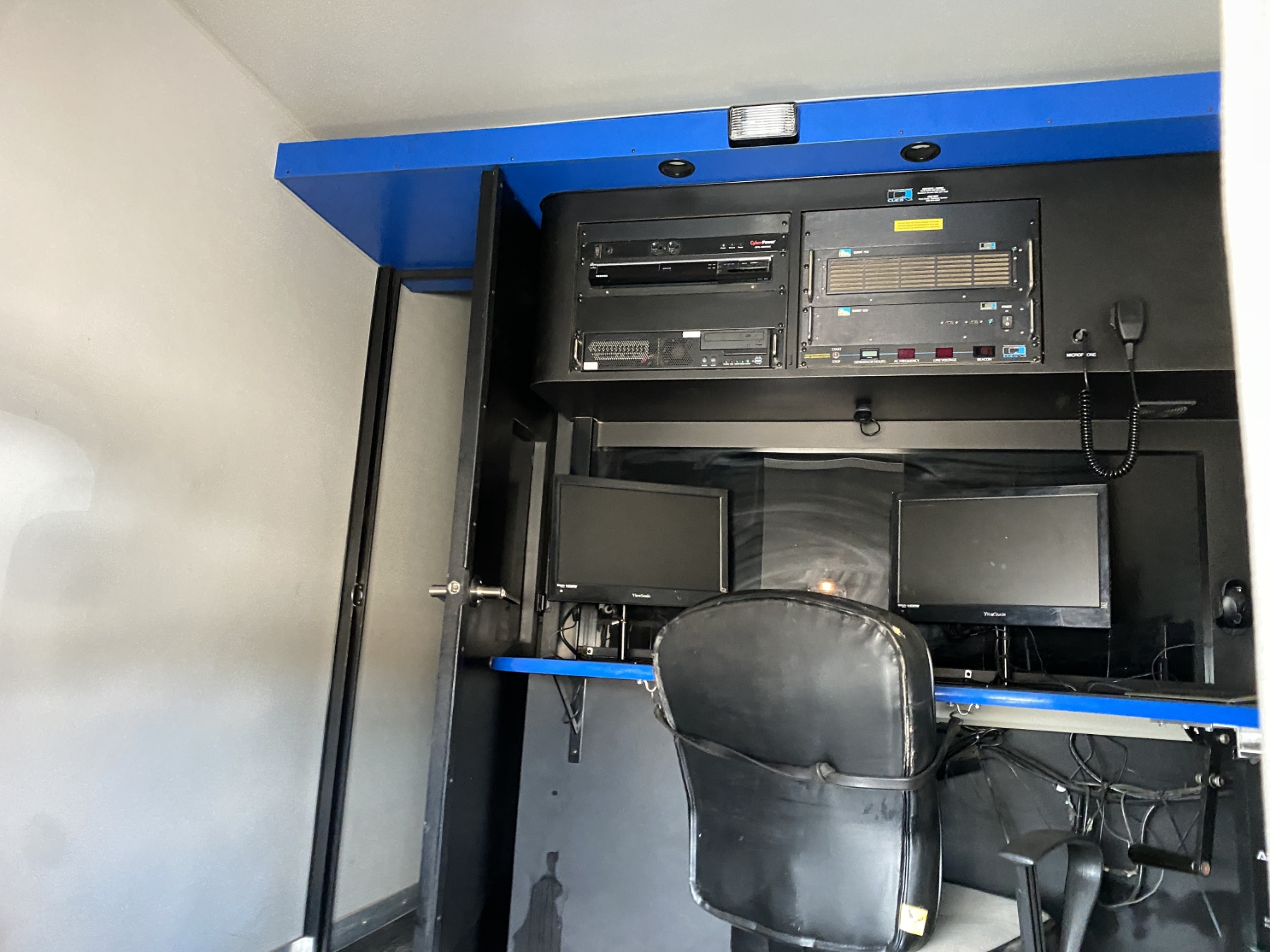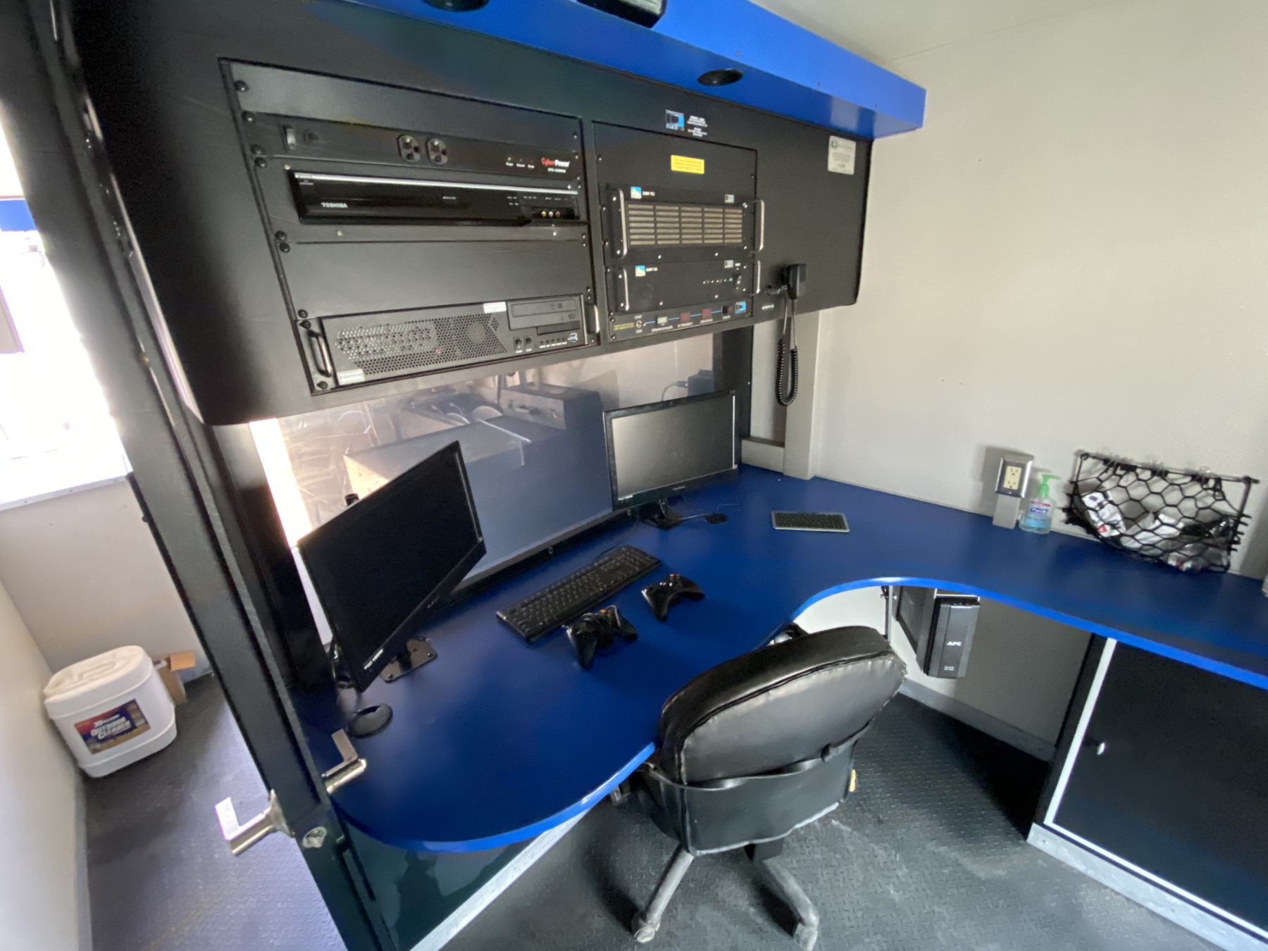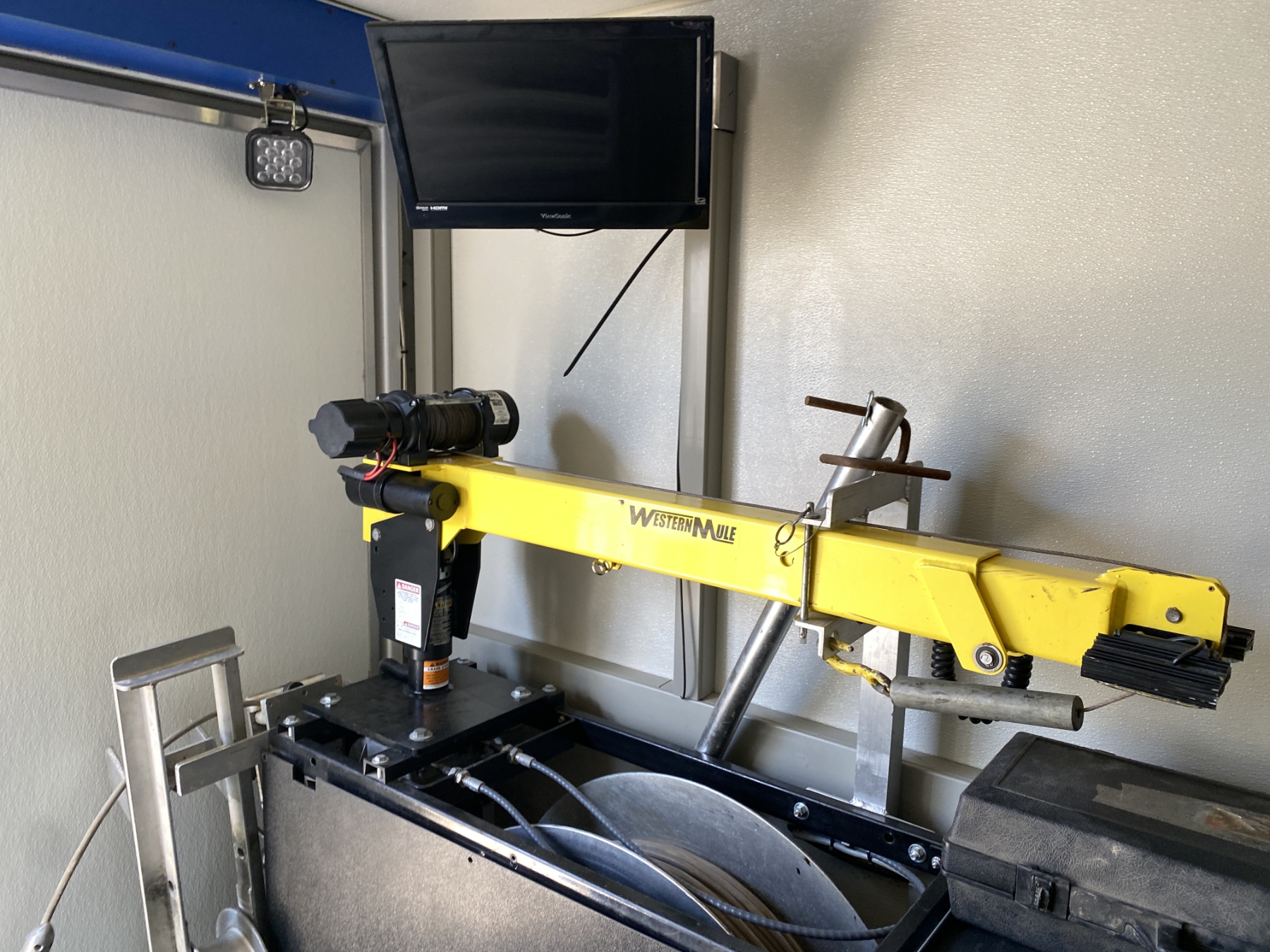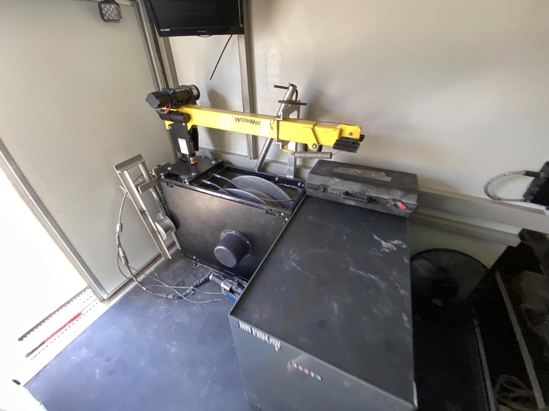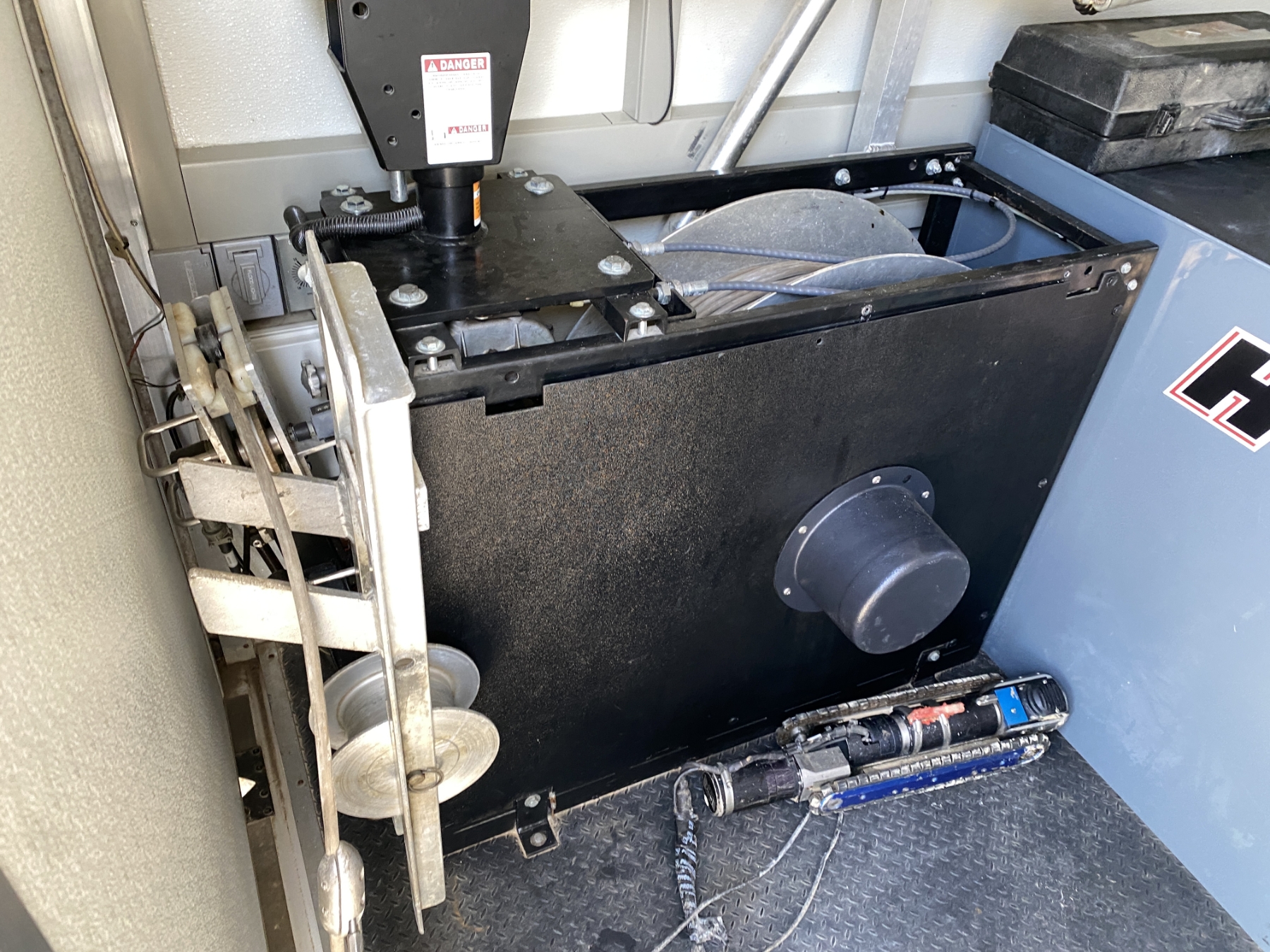 dually, 6.8L gas, A/T, Cues video system, Dual Office Monitors, Single rear facing monitor, Wired Xbox 360 controller, Battery Back Up, Cummins Onan Generator, Roof A/C, Back-up Camera, 1 Transporter, 1 mainline inspection camera, Multiple Storage areas, Water Storage w/2.9gpm pump, Crane, Approx 1500’ GOLD inspection Cable, 1 Tiger Tail, 1 Top Manhole Roller, 1 Manhole Hook, 6 extension poles w/hook and bottom roller