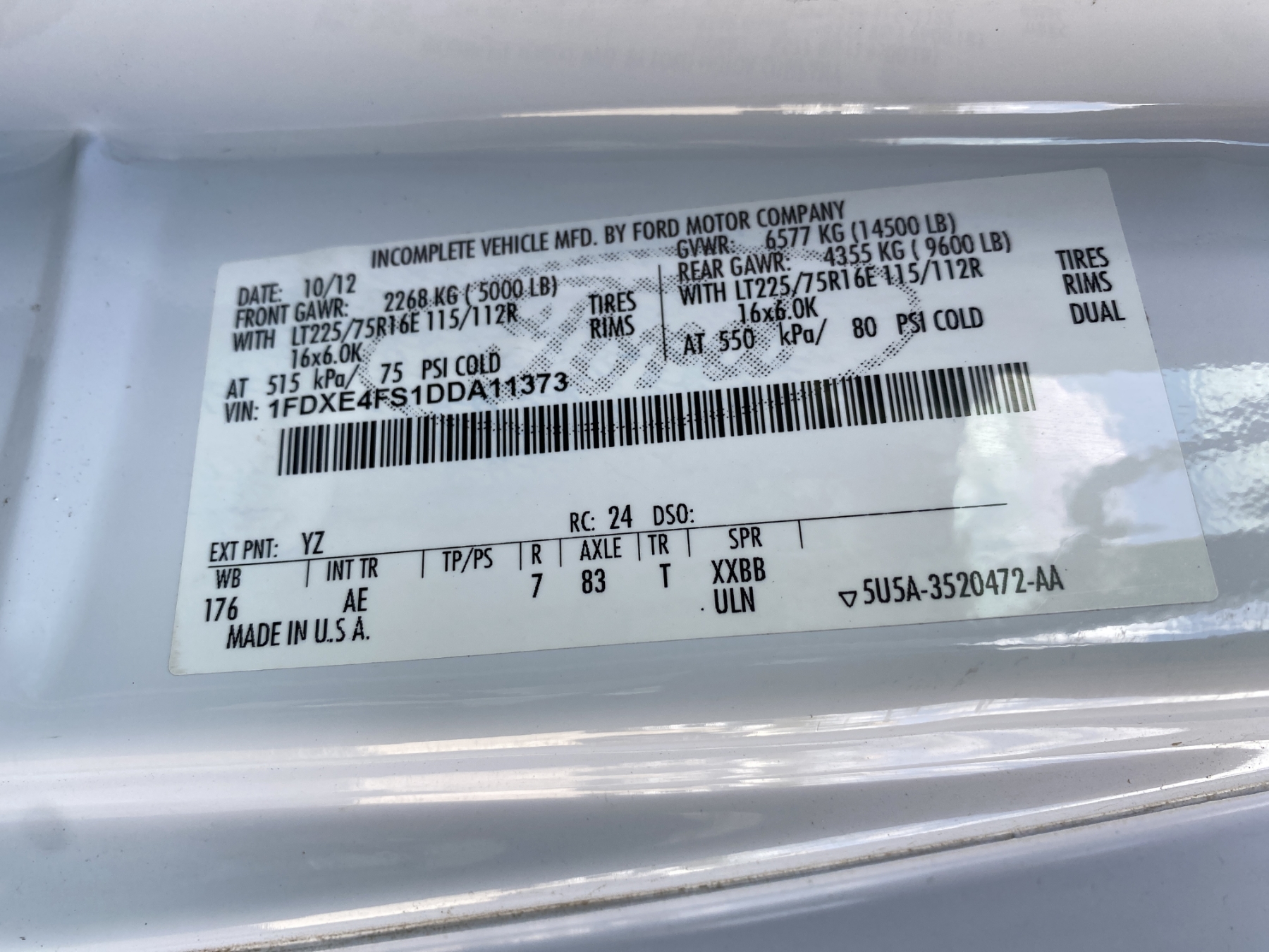Vehicle ID Number: 1FDXE4FS1DDA11373