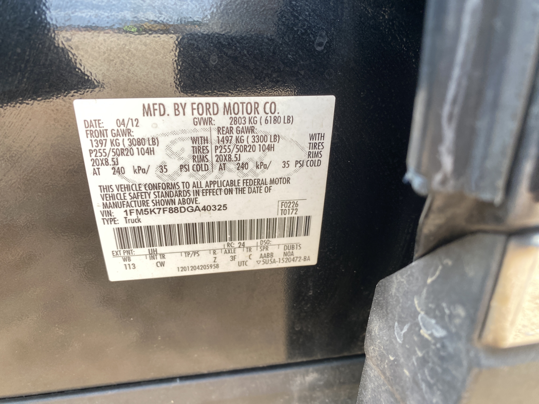 Vehicle ID Number: 1FM5K7F88DGA40325