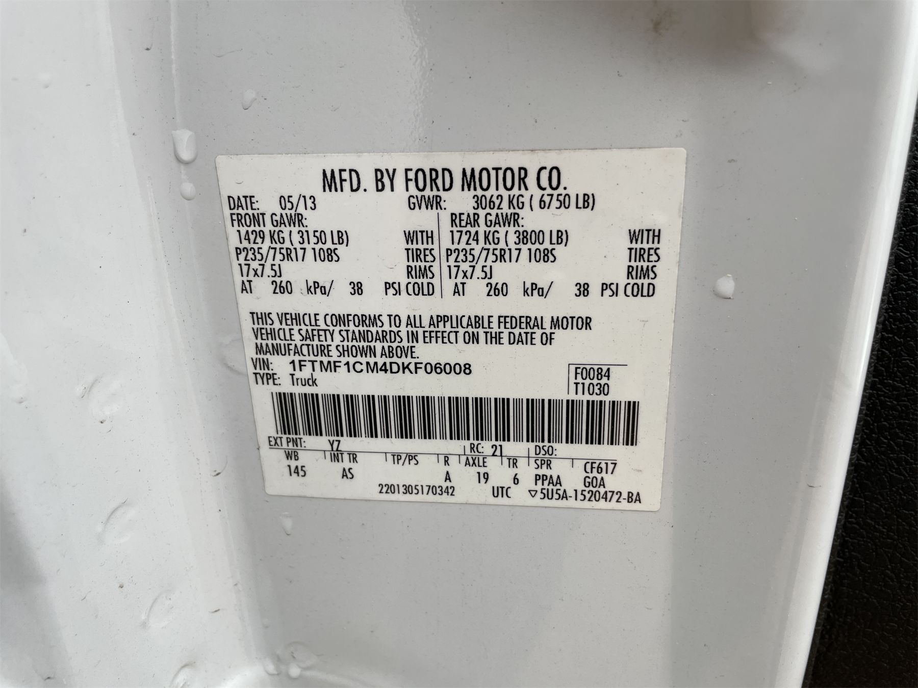 Vehicle ID Number: 1FTMF1CM4DKF06008