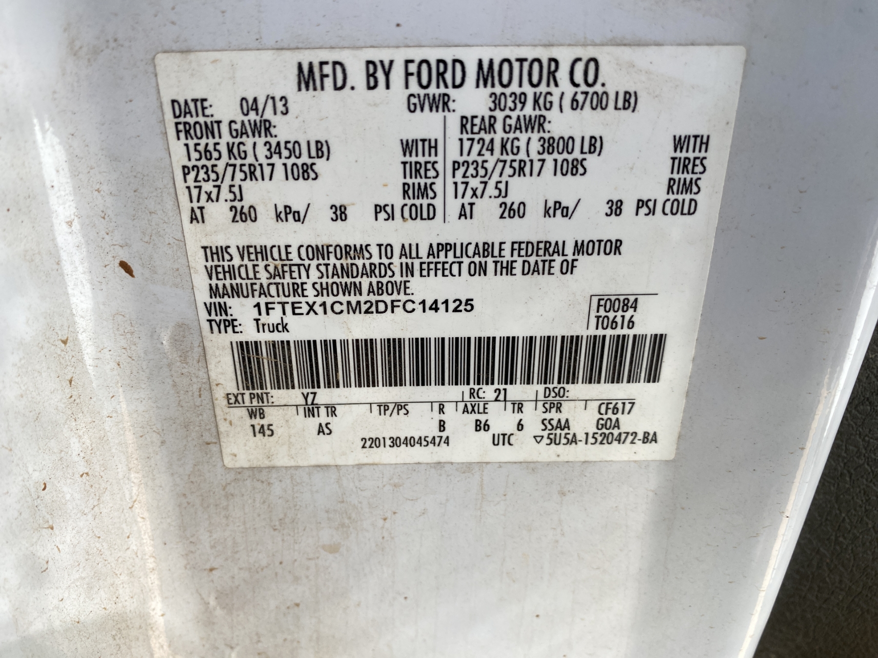 Vehicle ID Number: 1FTEX1CM2DFC14125