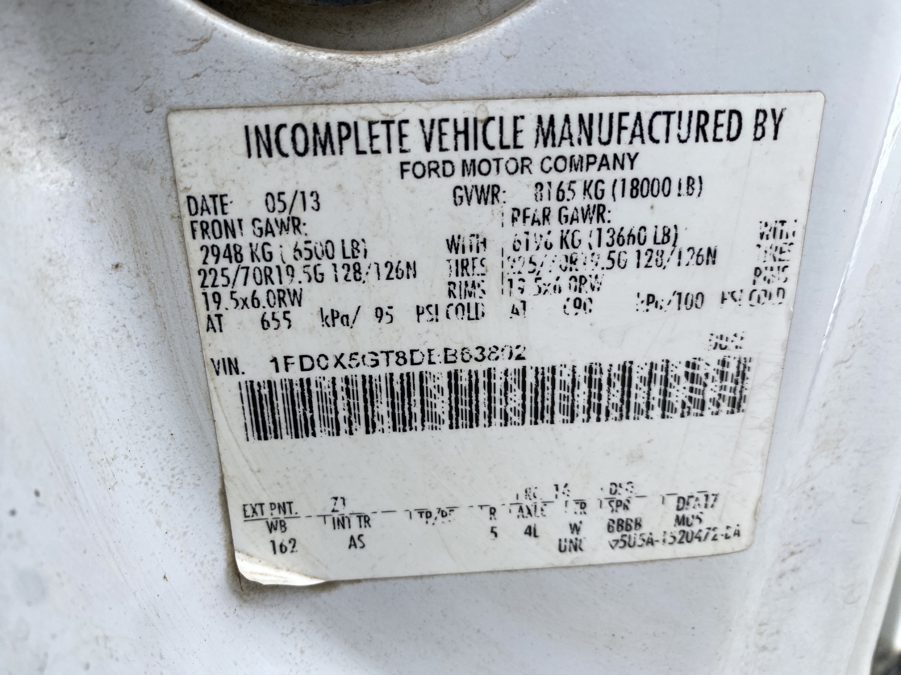 Vehicle ID Number: 1FD0X5GT8DEB63802
