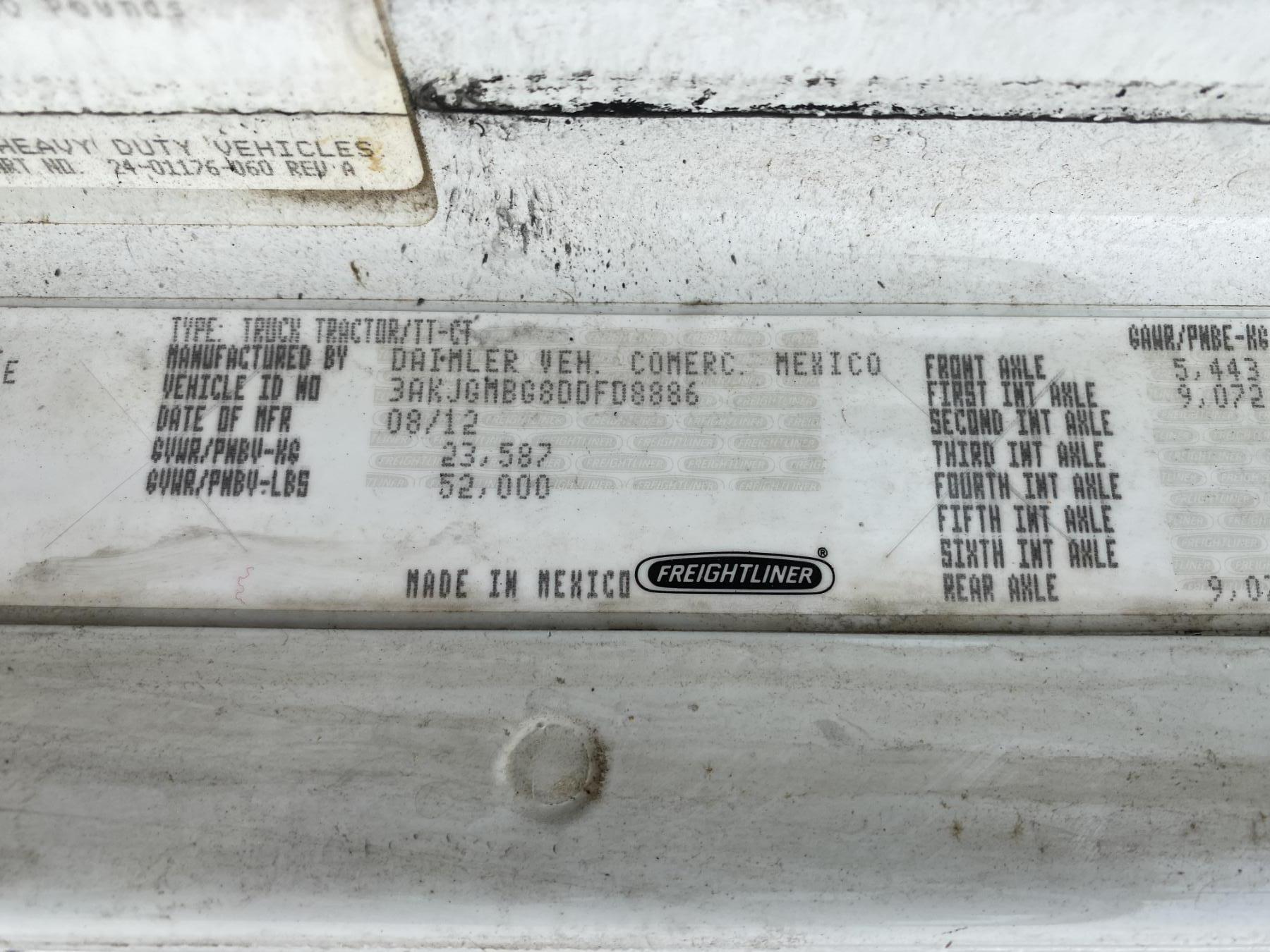 Vehicle ID Number: 3AKJGMBG8DDFD8886