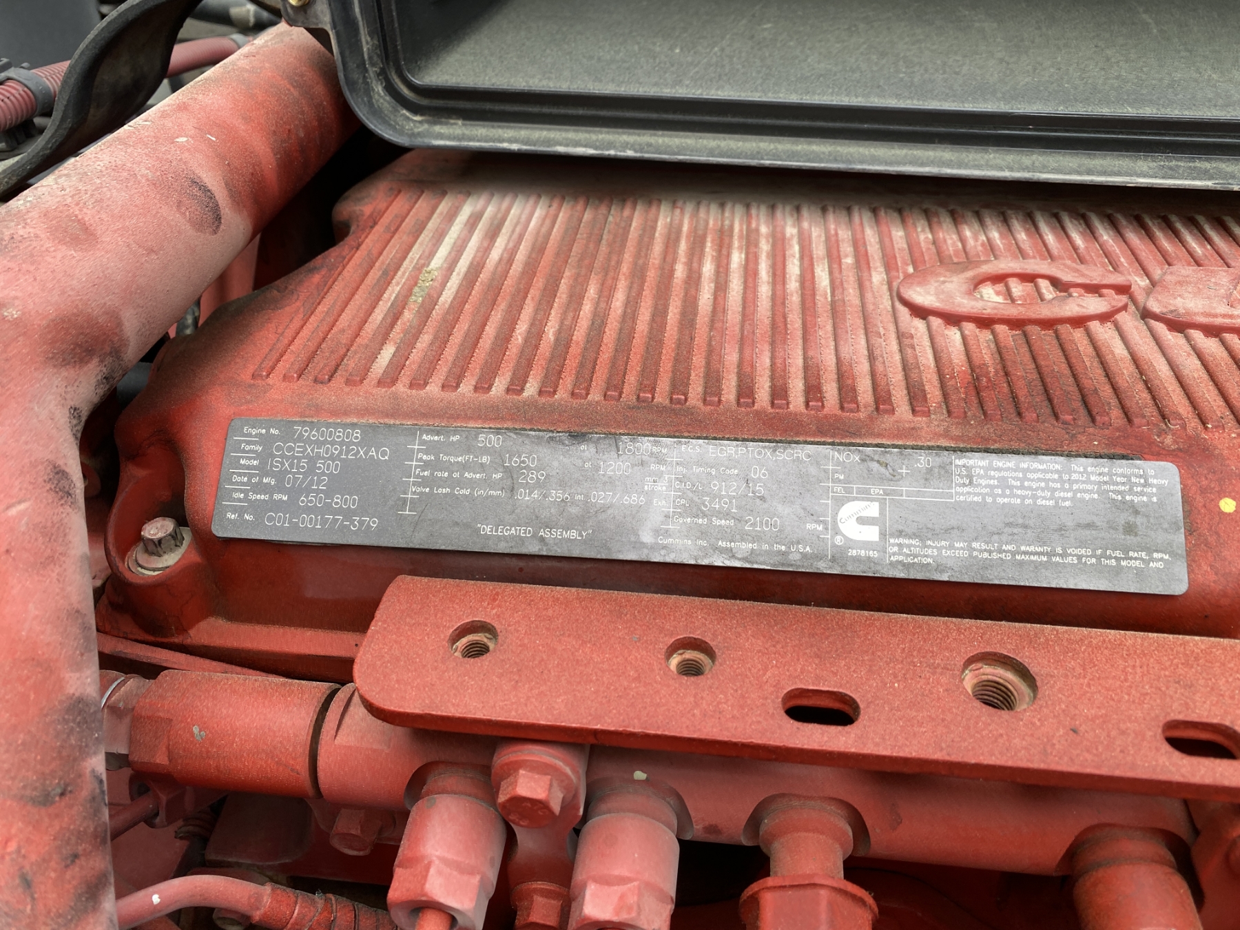 T/A, 500 HP Cummins ISX15 engine, 18 speed trans, 40K rears, air ride, 12K front, 232" W/B, alum headache rack, 11R24.5 tires, all alum