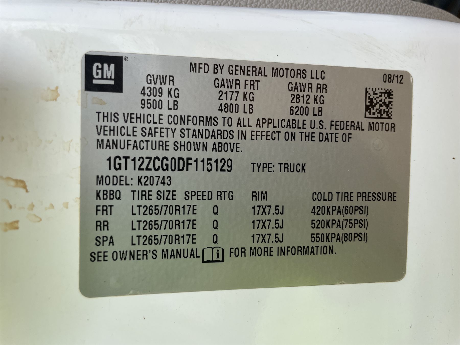 Vehicle ID Number: 1GT12ZCG0DF115129