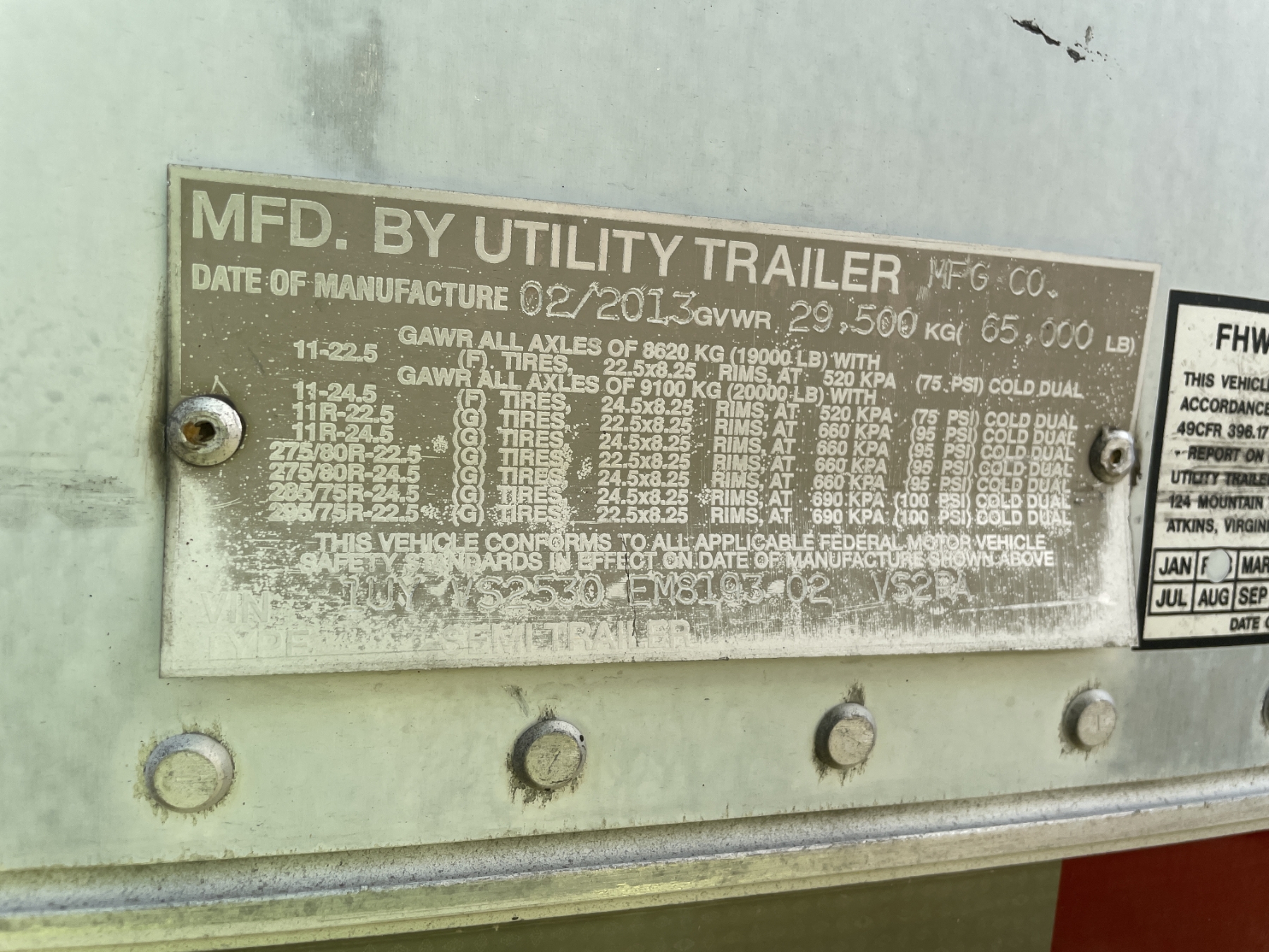 T/A, 53' length, Carrier 2500A unit, barn doors, 295/75R22.5 tires