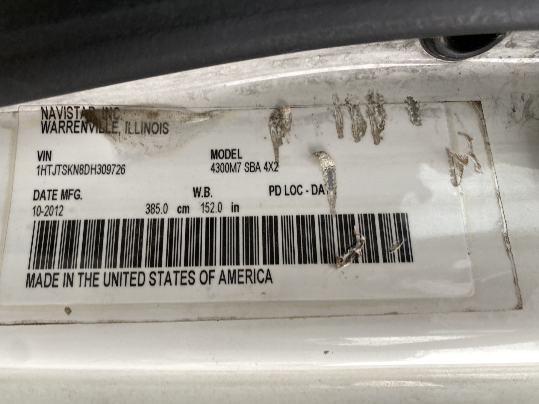 Vehicle ID Number: 1HTJTSKN8DH309726