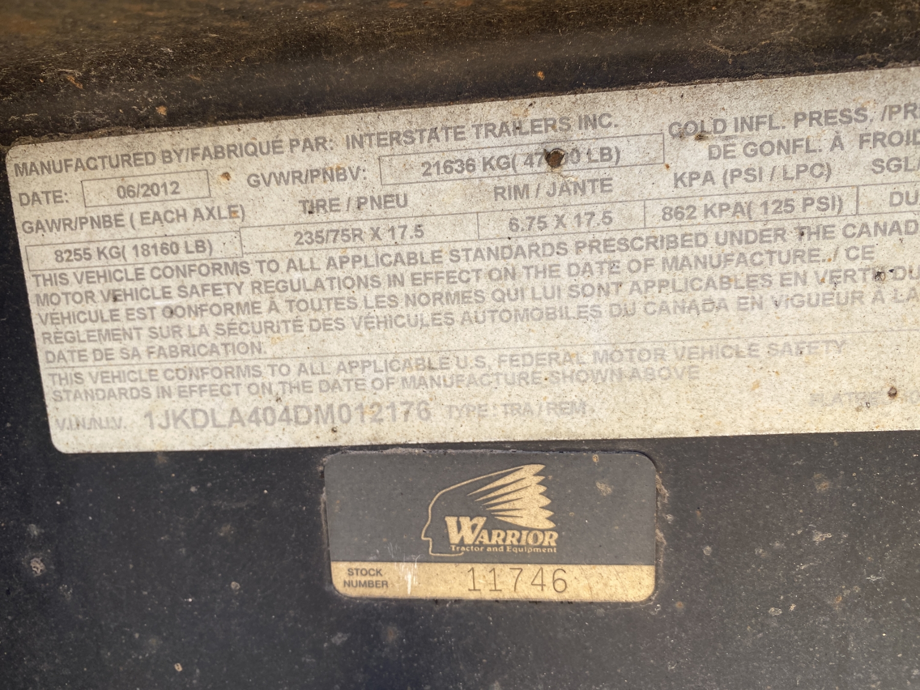 Vehicle ID Number: 1JKDLA404DM012176