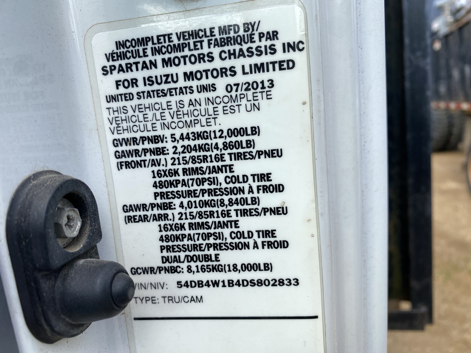 Vehicle ID Number: 54DB4W1B4DS802833