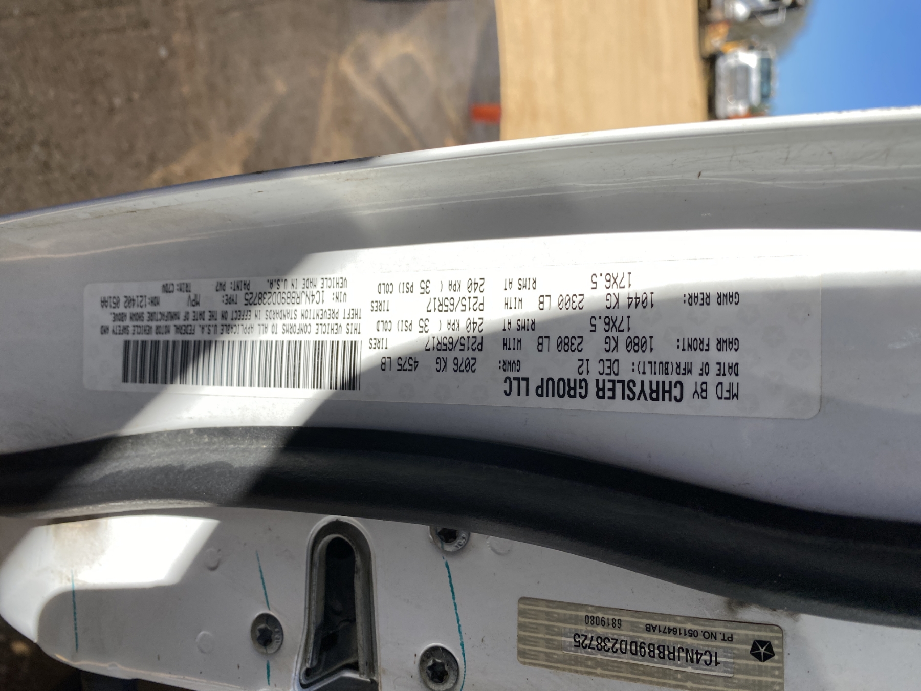 Vehicle ID Number: 1C4NJRBB9DD238725