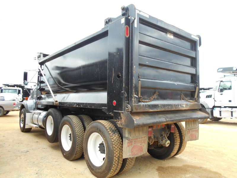 2013 KENWORTH T800 TRI-AXLE DUMP, S/N 1NKDL40X9DJ385456, 500 HP CUMMINS ISX 15 ENG, 8LL FULLER TRANS, 46K REARS, HENDRICKSON RT463 SUSPENSION, DIFF LOCKS, 4:10 REAR AXLE RATIO, 20K FRONT AXLE, 20K AIR LIFT AXLE, 213" WHEELBASE, DOUBLE FRAME, P/S, A/C, ENGINE BRAKE, 120 GAL ALUM FUEL TANK, 16' HARD OX DUMP BODY, TARP, AIR TAILGATE, 385/65R22.5 FRONT TIRES, FRONT ALUM DISC WHEELS, 11R24.5 REAR TIRES, REAR STEEL DISC WHEELS, ODOMETER READING 32,806 MILES (COUNTY OWNED)