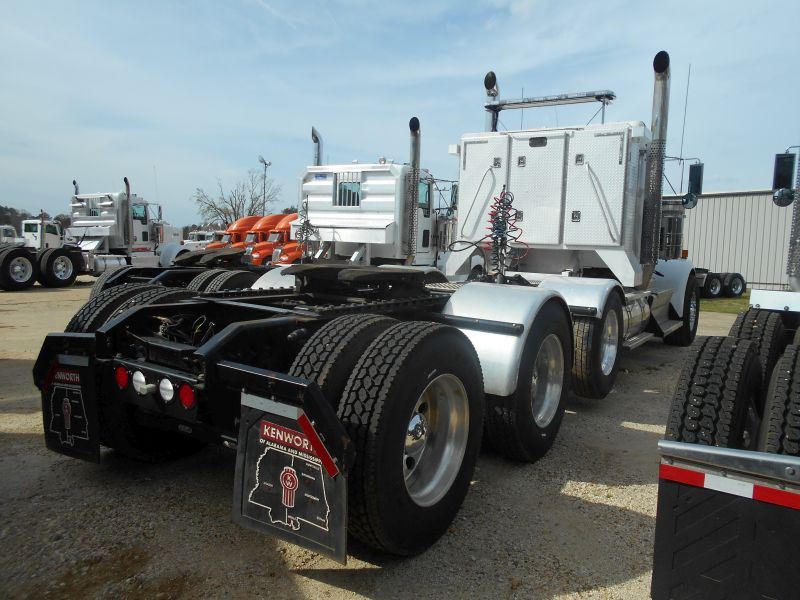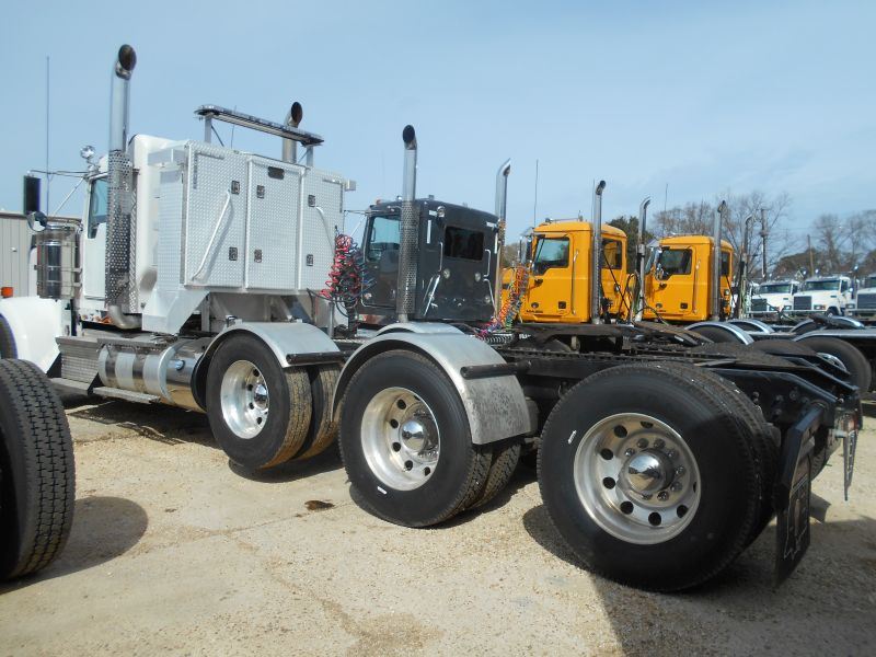2013 KENWORTH W900 TRI-AXLE TRUCK TRACTOR, S/N 1XKWP4TX5DJ341470, 550 HP CUMMINS ISX 15 ENG, 18 SPD TRANS, 46K REARS, 14,320# FRONT, ENGINE BRAKE, STURDY-LITE ALUM HEADACHE RACK, VANTAGE LIGHT BAR W/ IN CAB CONTROLS, REAR FENDERS, 11R22.5 REAR TIRES, 425/65R22.5 FRONT TIRES, ALUM DISC WHEELS, ODOMETER READING 128,735 MILES