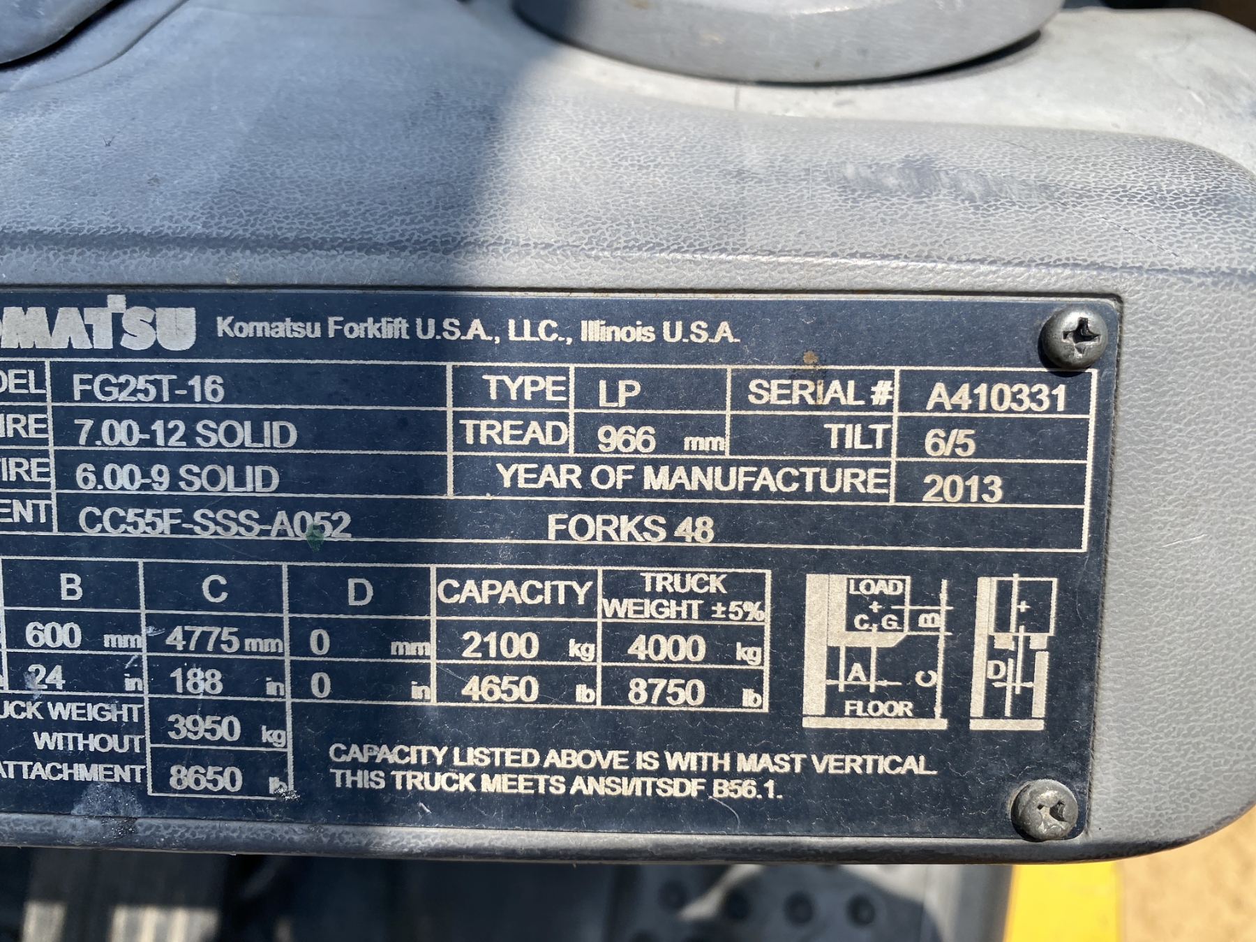 4,650 lb. capacity, 188" triple stage mast, LP gas, canopy