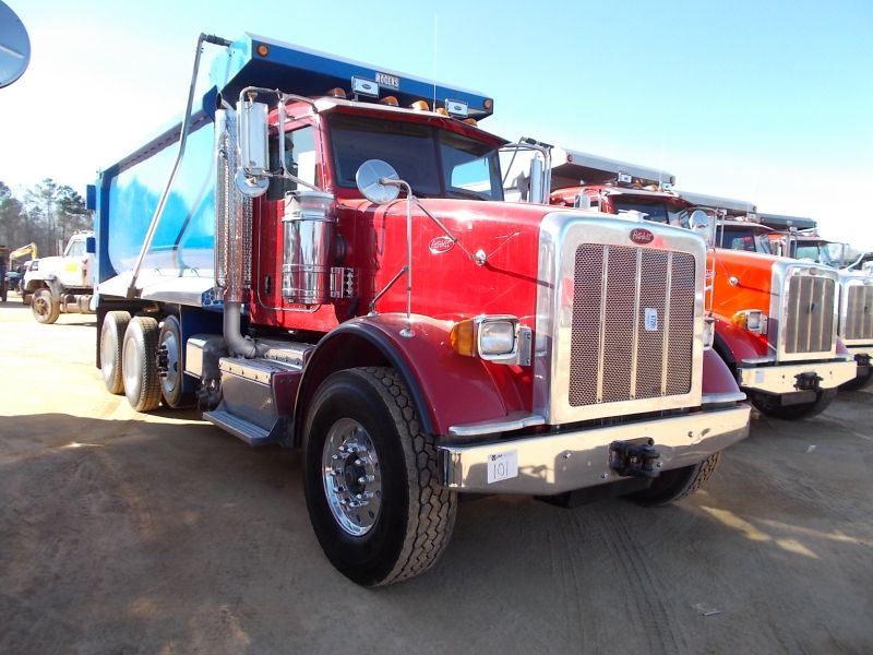 2013 PETERBILT 367 TRI-AXLE DUMP, S/N 1NPTL40X4DD182088, CUMMINS ISX 450 HP ENG, ALLISON A/T, 46K REARS, 20K FRONT, CHALMERS SUSP, 4.10 RATIO, ENGINE BRAKE, 227" WHEEL BASE, PRESTLEGE INTERIOR, 17' RODGERS ELLIPTICAL DUMP BODY, 22.5 CU YD CAP, HIGH LIFT TAILGATE, 11R22.5 REAR TIRES, 385/65R22.5 FRONT TIRES, DISC WHEELS, ODOMETER READING 112,545 MILES