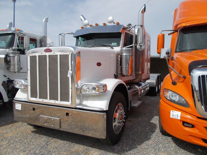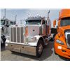 2013 PETERBILT 388 T/A TRUCK TRACTOR, S/N 1XPWD49X5DD189683, 500 HP ISX CUMMINS ENG, EATON 10 SPD TRANS, 40K REARS, 13,200K FRONT, ENGINE BRAKE, SLEEPER CAB, 11R24.5 TIRES ON STEEL DISC WHEELS, ODOMETER READING 275,934 MILES