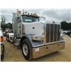 2013 PETERBILT 389 DAY CAB TRUCK TRACTOR, S/N 1NPXGGGG00D200691, CAT C15 500 HP DIESEL ENG, 8LL TRANS, 40K REARS, 14,6K FRONT, 20K LIFT AXLE, P/S, A/C, ENGINE BRAKE, DOUBLE FRAME, DUAL EXHAUST, 11R24.5 REAR TIRES ON DISC WHEELS, 315/80R22.5 FRONT TIRES ON ALUM DISC WHEELS, ODOMETER READING 1809 MI (PRE-EMISSION ASSEMBLY-GLIDER KIT)