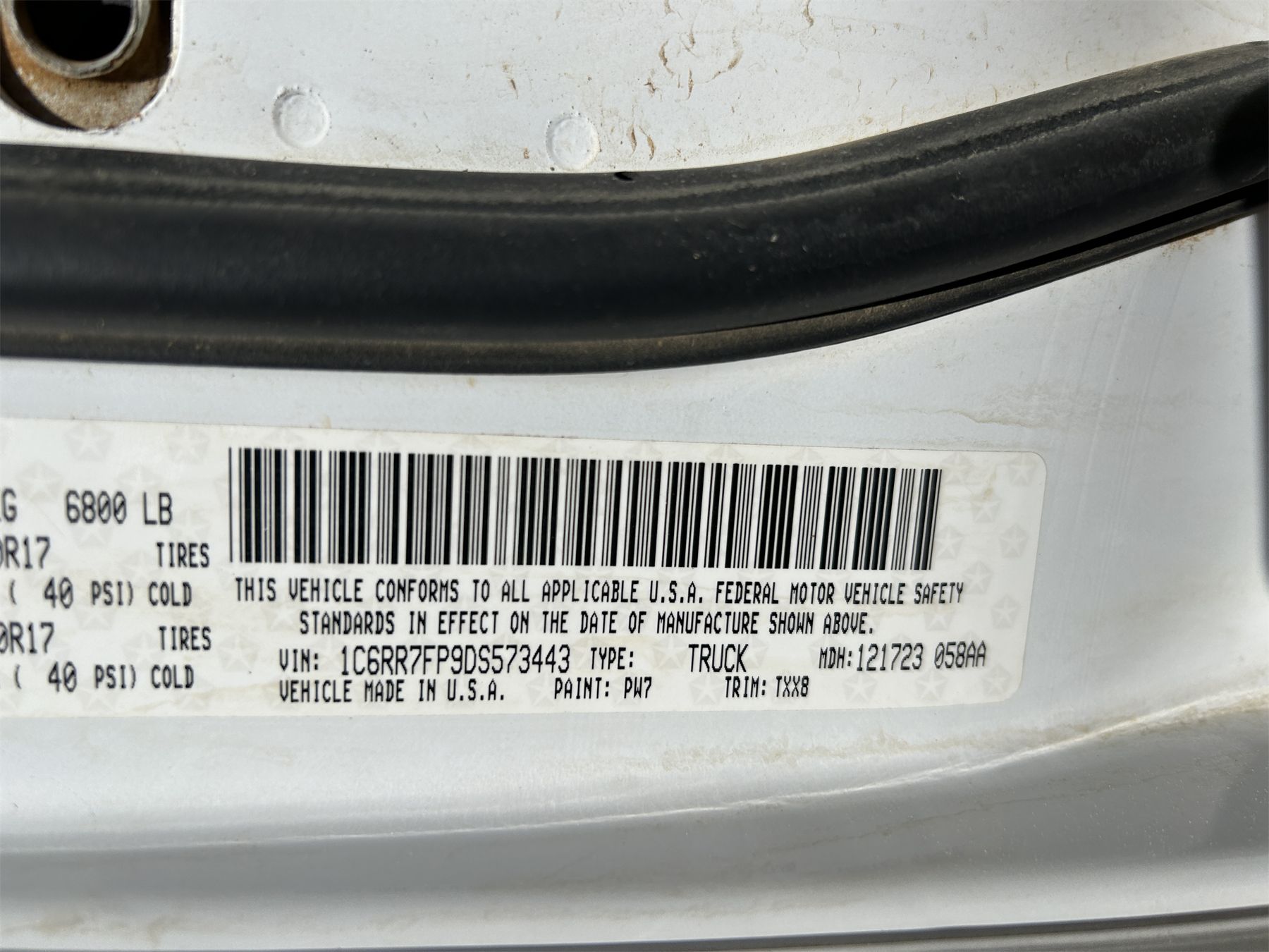 Vehicle ID Number: 1C6RR7FP9DS573443