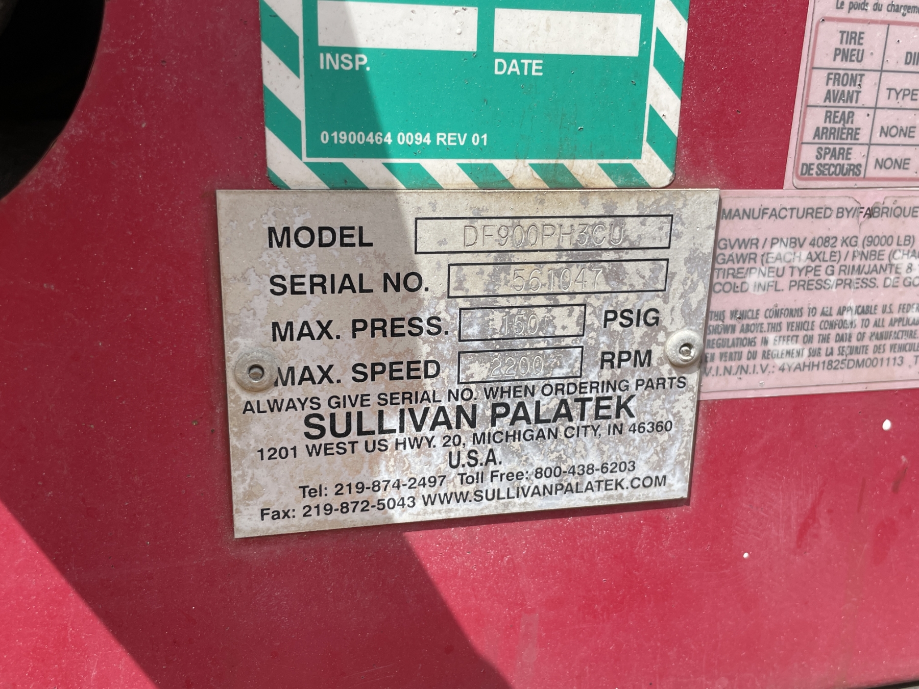 2013 SULLIVAN PALATEK 900 CFM Air Compressor