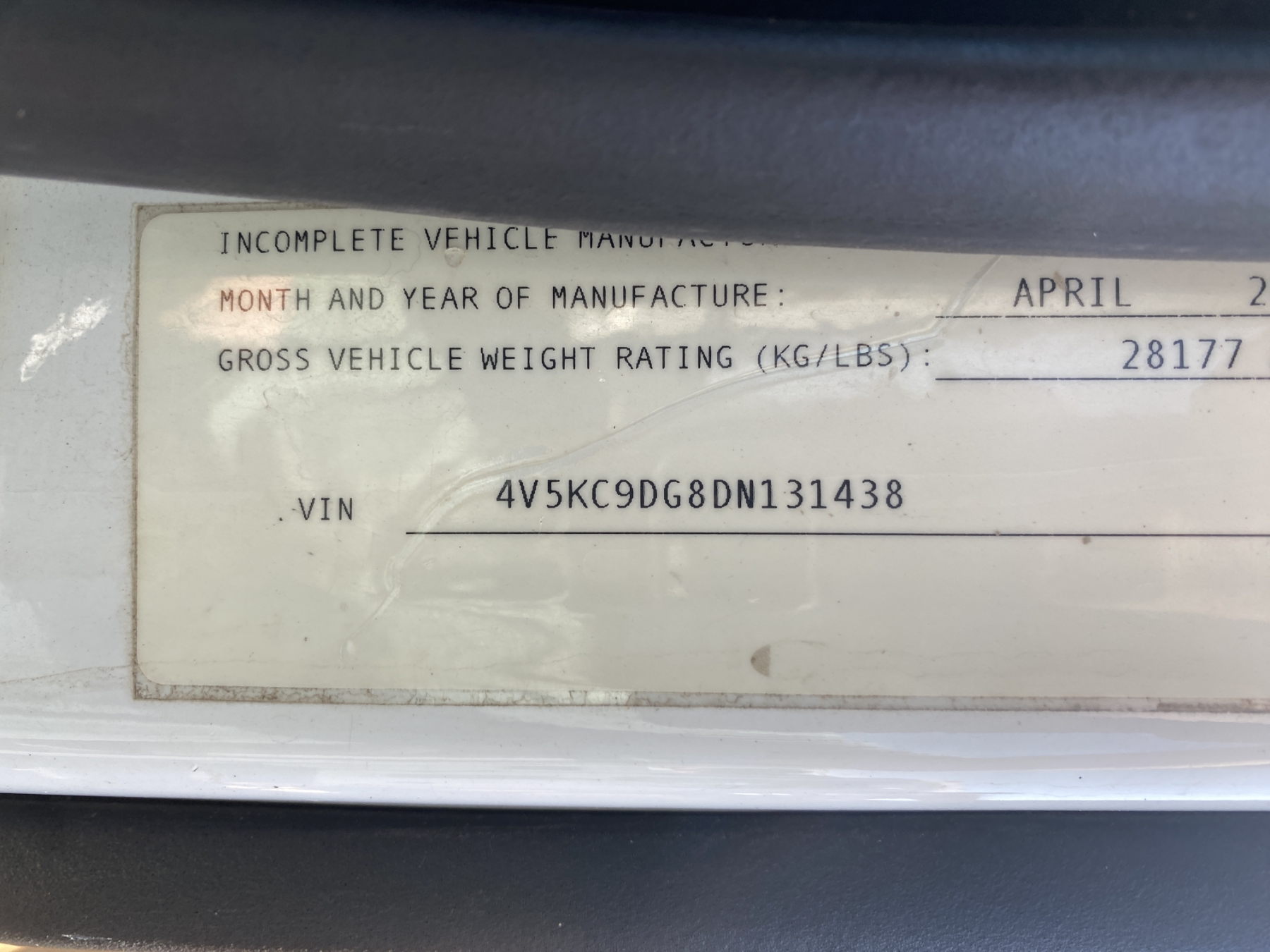 Vehicle ID Number: 4V5KC9DG8DN131438