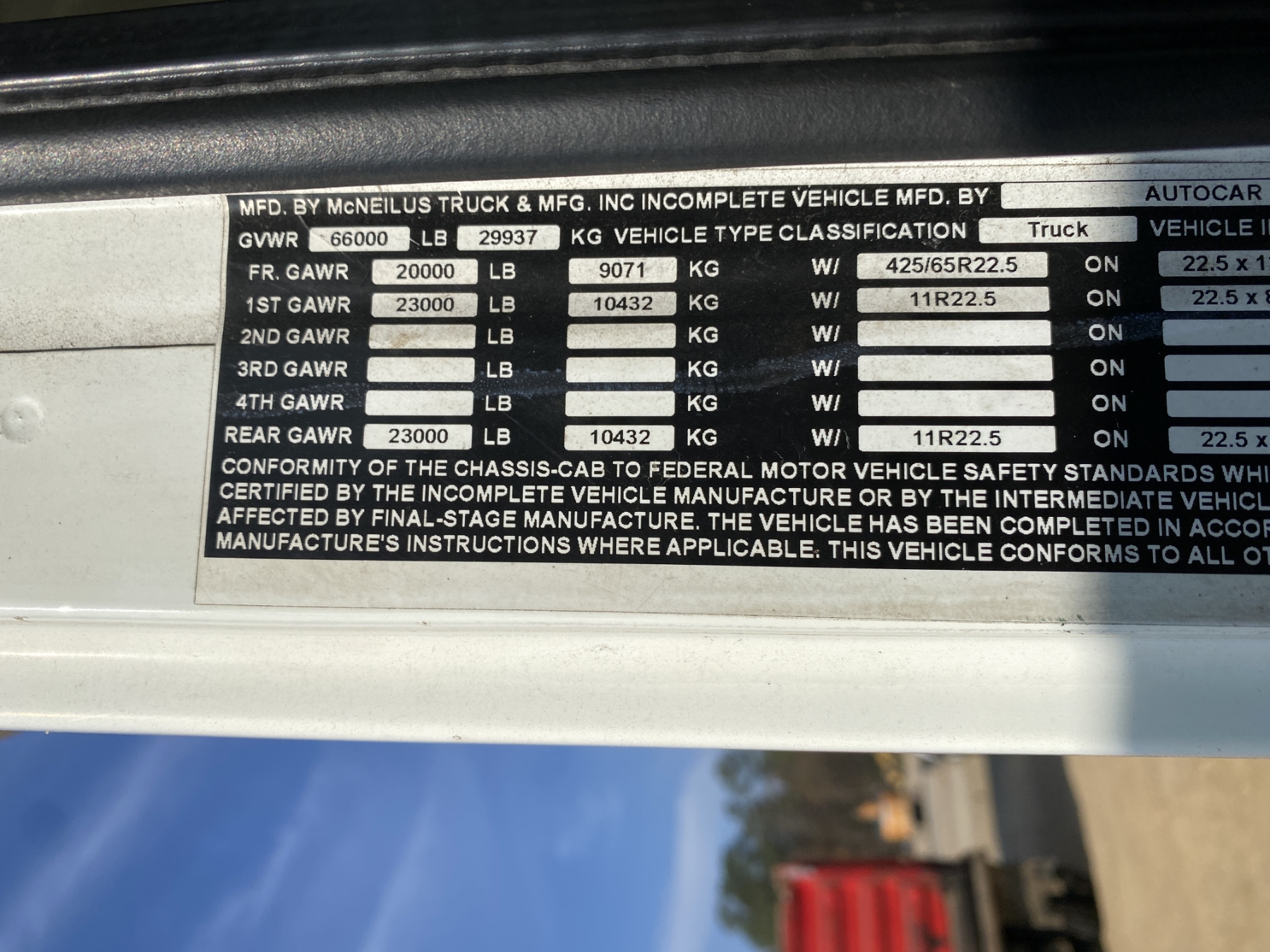 T/A, Right Side Drive, Cummins ISL9 engine, Allison A/T, 46K rears, 20K front, McNeilus 2849 side loader, 11R22.5 rear tires, 425/65R22.5 front tires