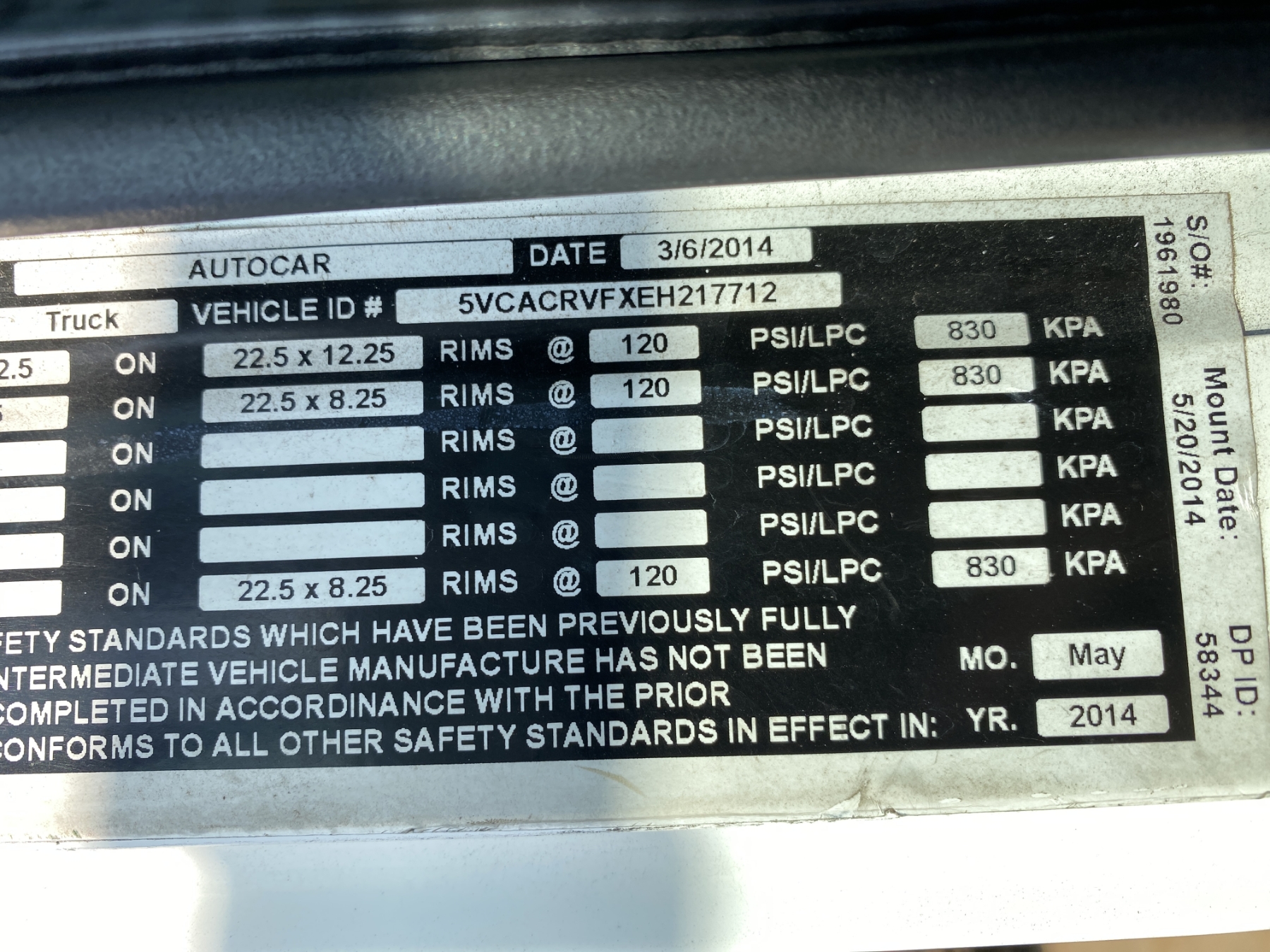 Vehicle ID Number: 5VCACRVFXEH217712