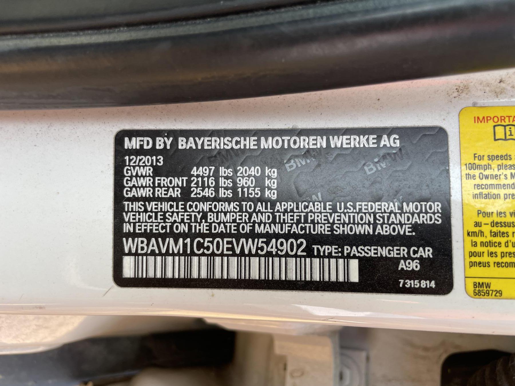 Vehicle ID Number: WBAVM1C50EVW54902