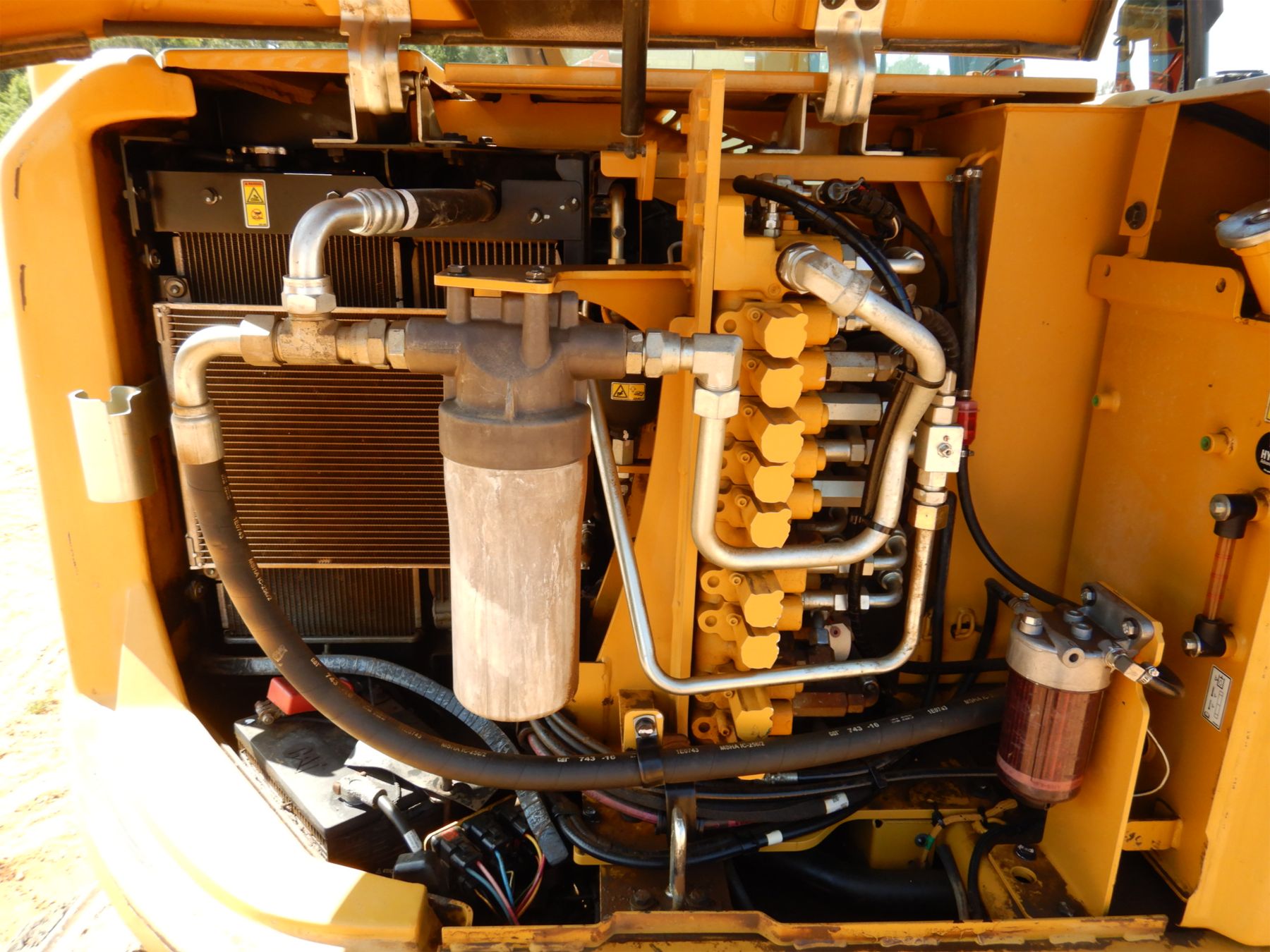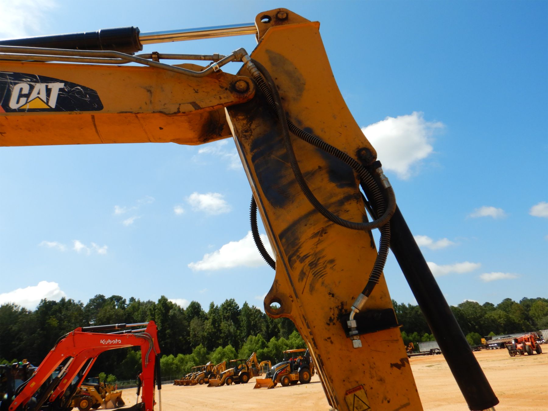 7' 2" stick, 36" bucket, aux hyd, blade, rubber pad inserts, cab, A/C