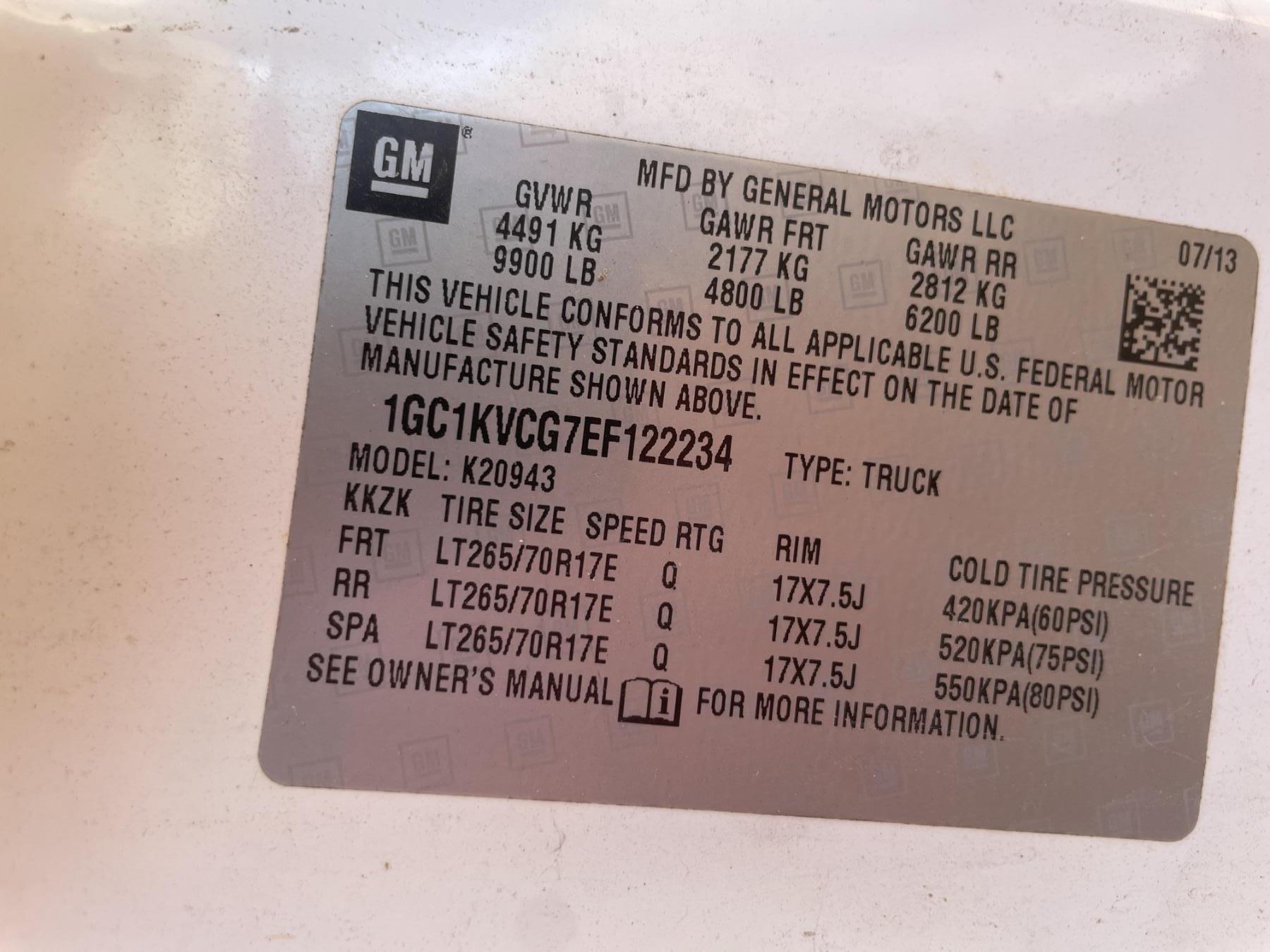 Vehicle ID Number: 1GC1KVCG7EF122234