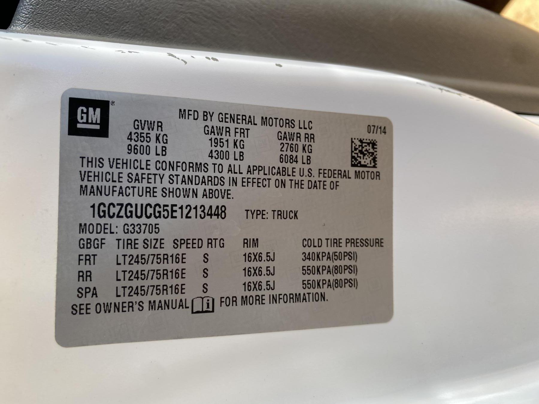Vehicle ID Number: 1GCZGUCG5E1213448