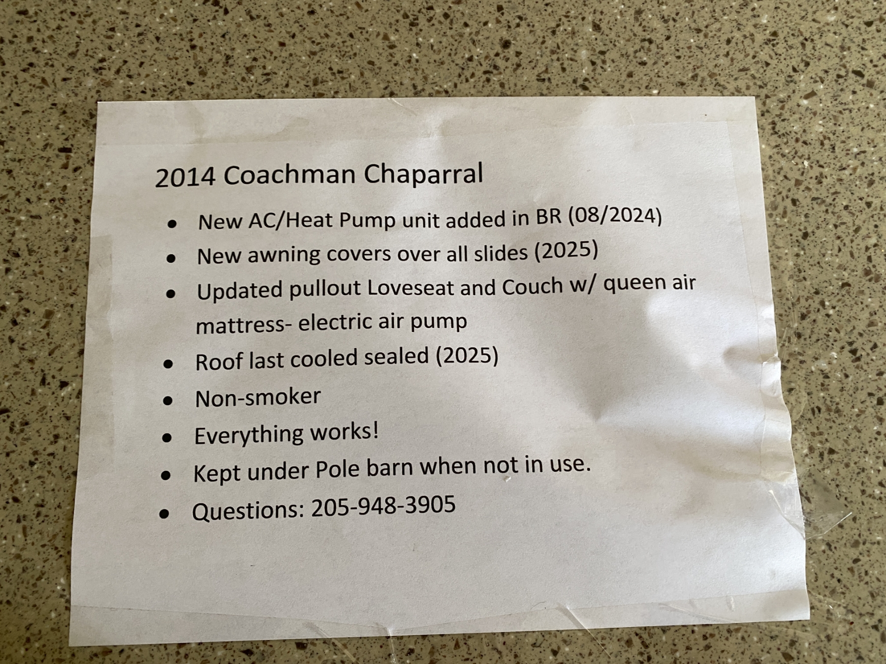 T/A, fifth wheel, 36' length, (3) slides, awning