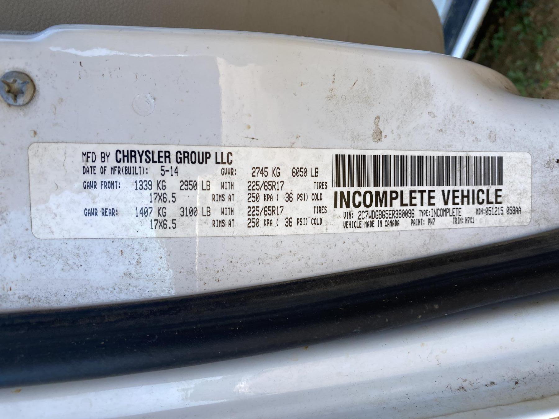Vehicle ID Number: 2C7WDGBG5ER380096