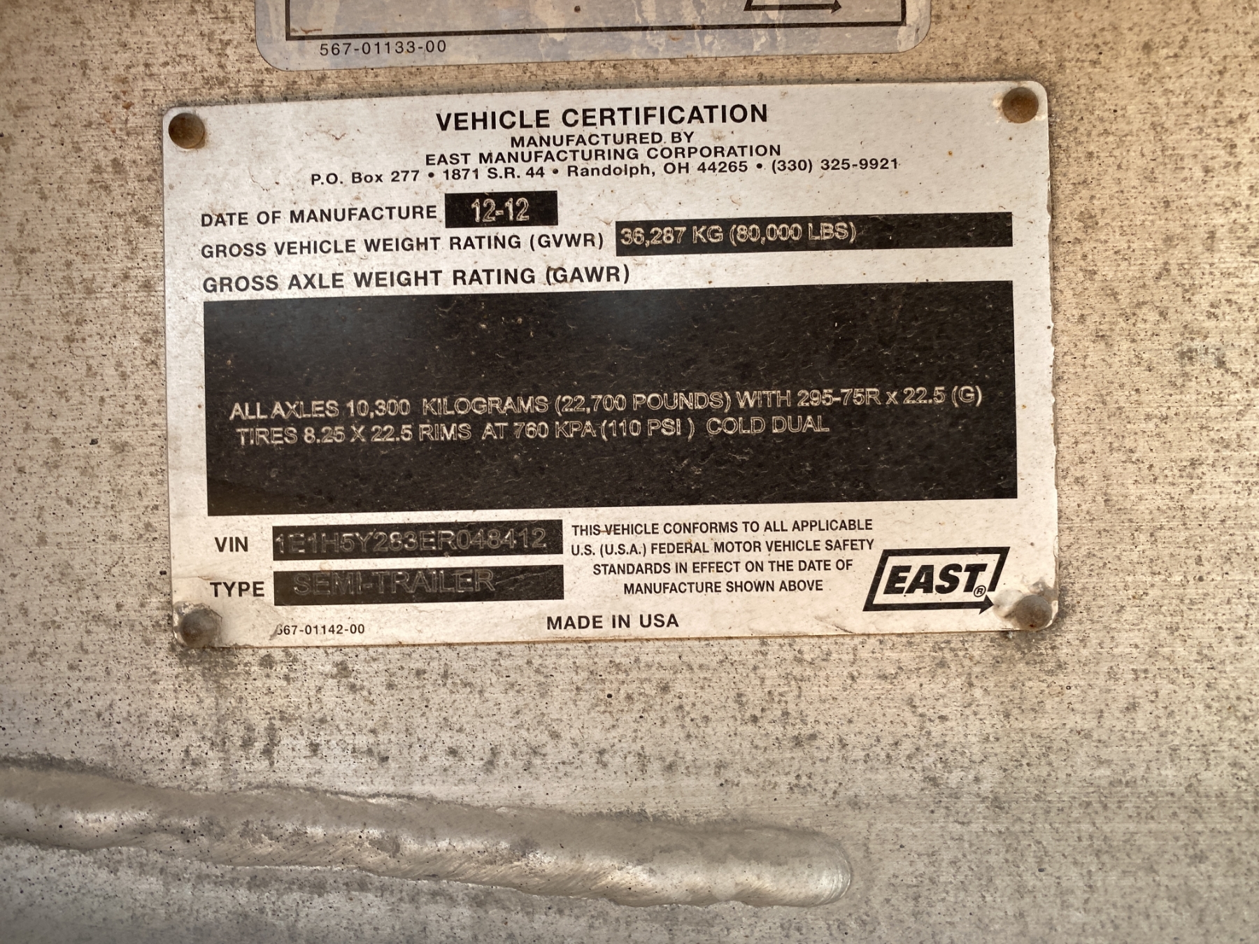 T/A, 48' length, 295/75R22.5 tires, spread axle, all alum