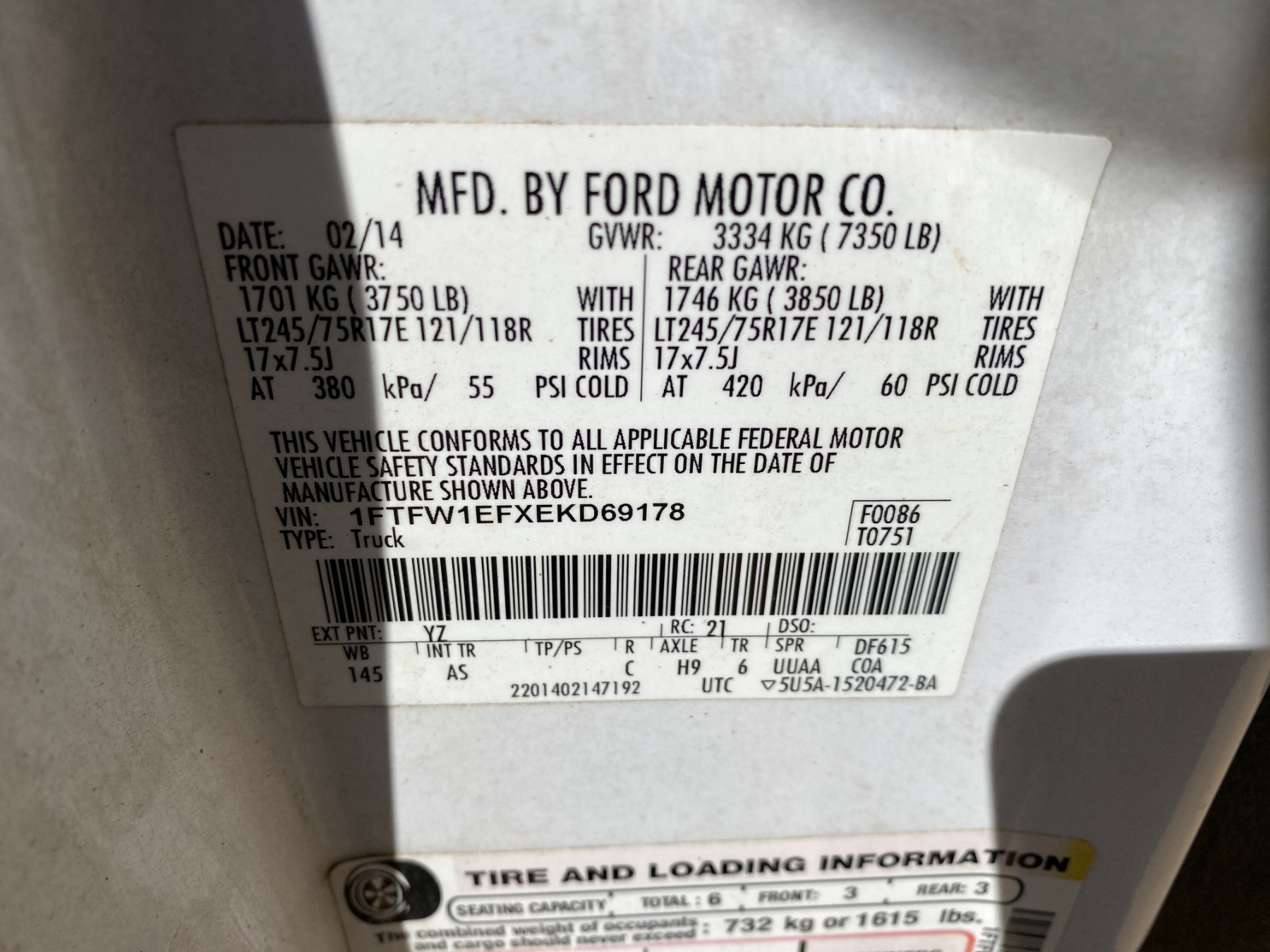 Vehicle ID Number: 1FTFW1EFXEKD69178