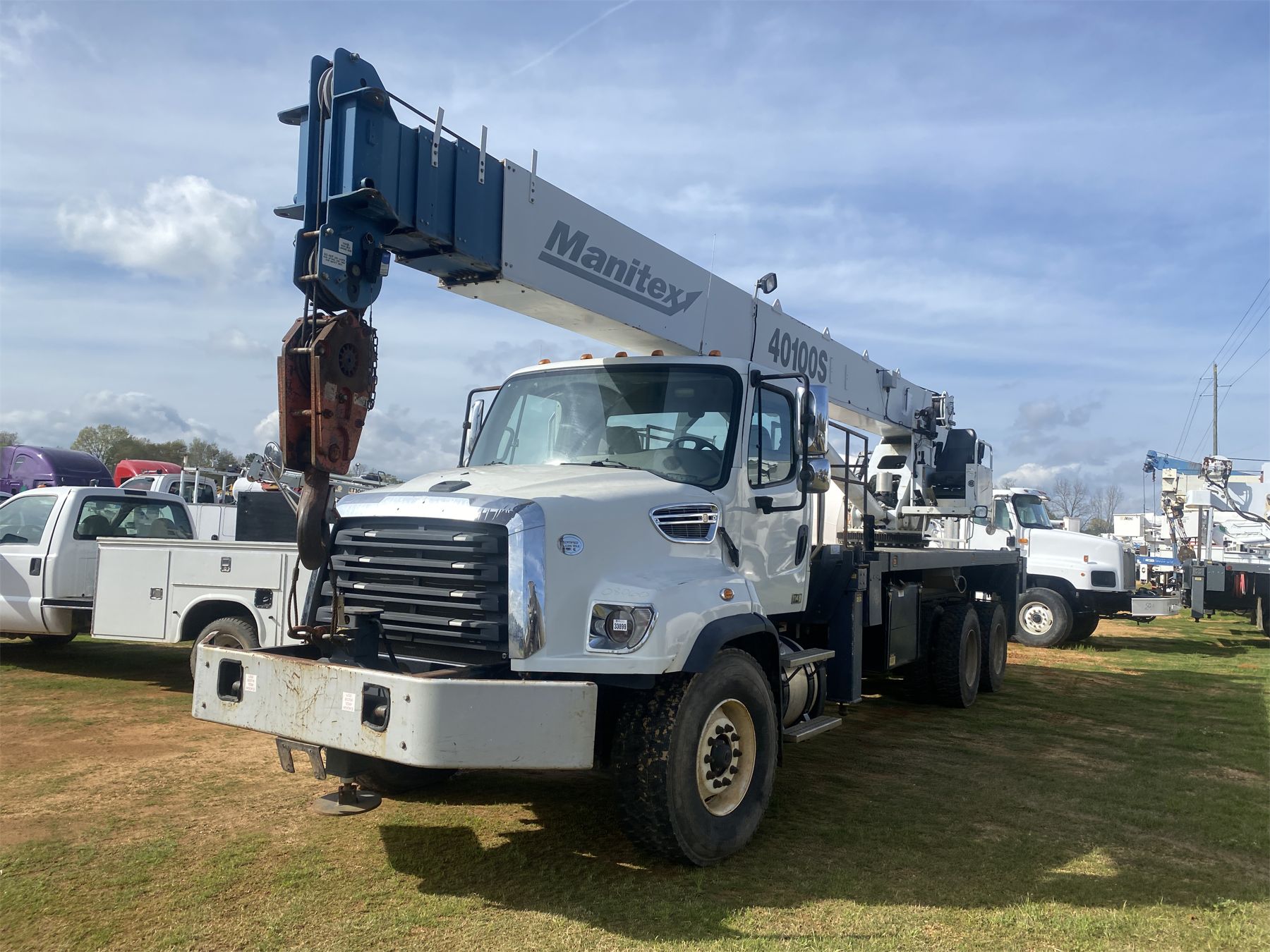 T/A, Cummins engine, Allison A/T, Manitex 40100S rear mtd. crane (S/N 209979), McKissick 15 Ton hook block, 24' flatbed, hyd outriggers, (Truck throttle issues)