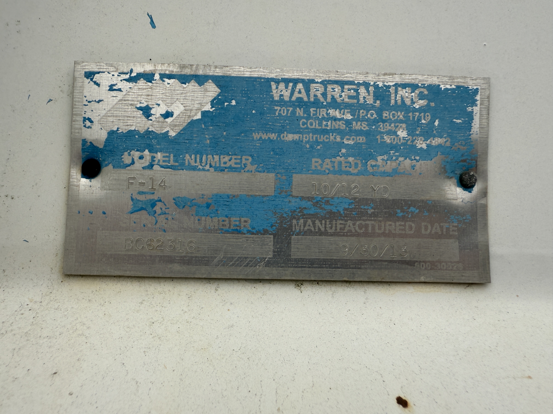 T/A, Cummins ISL9 engine, Allison A/T, 40K rears, 12K front, 14' Warren body, 11R22.5 tires, (Inoperable)