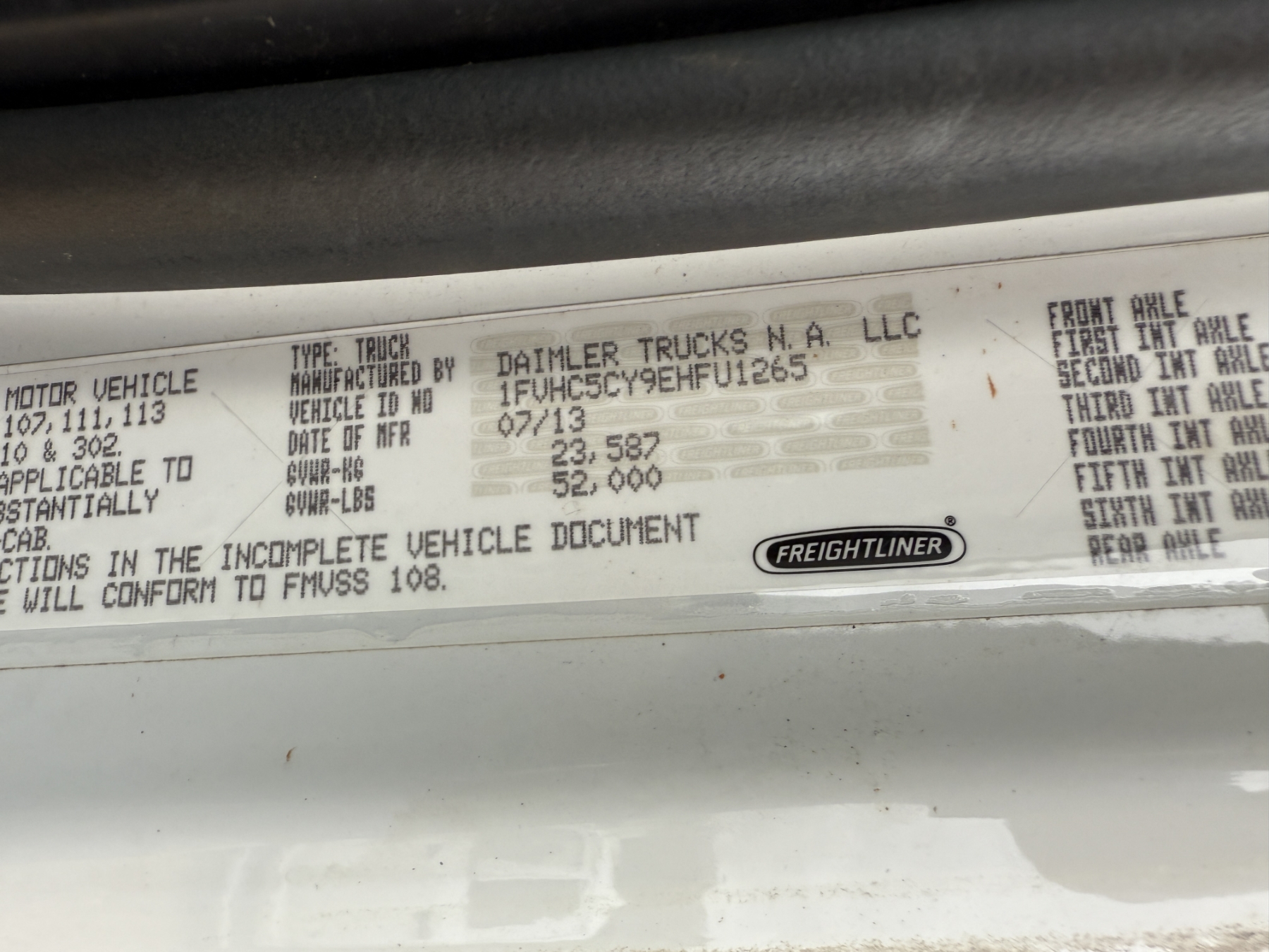 Vehicle ID Number: 1FVHC5CY9EHFU1265
