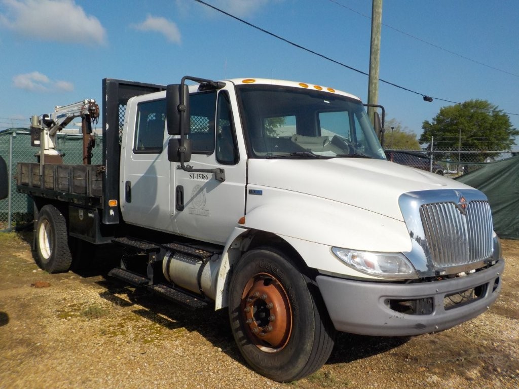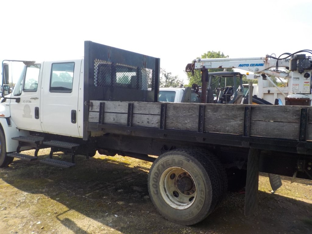 S/A, crew cab, International MaxxForce engine, Allison A/T, 12' flatbed body, Auto Crane 3203 service crane, (Inoperable) (Engine Issues)