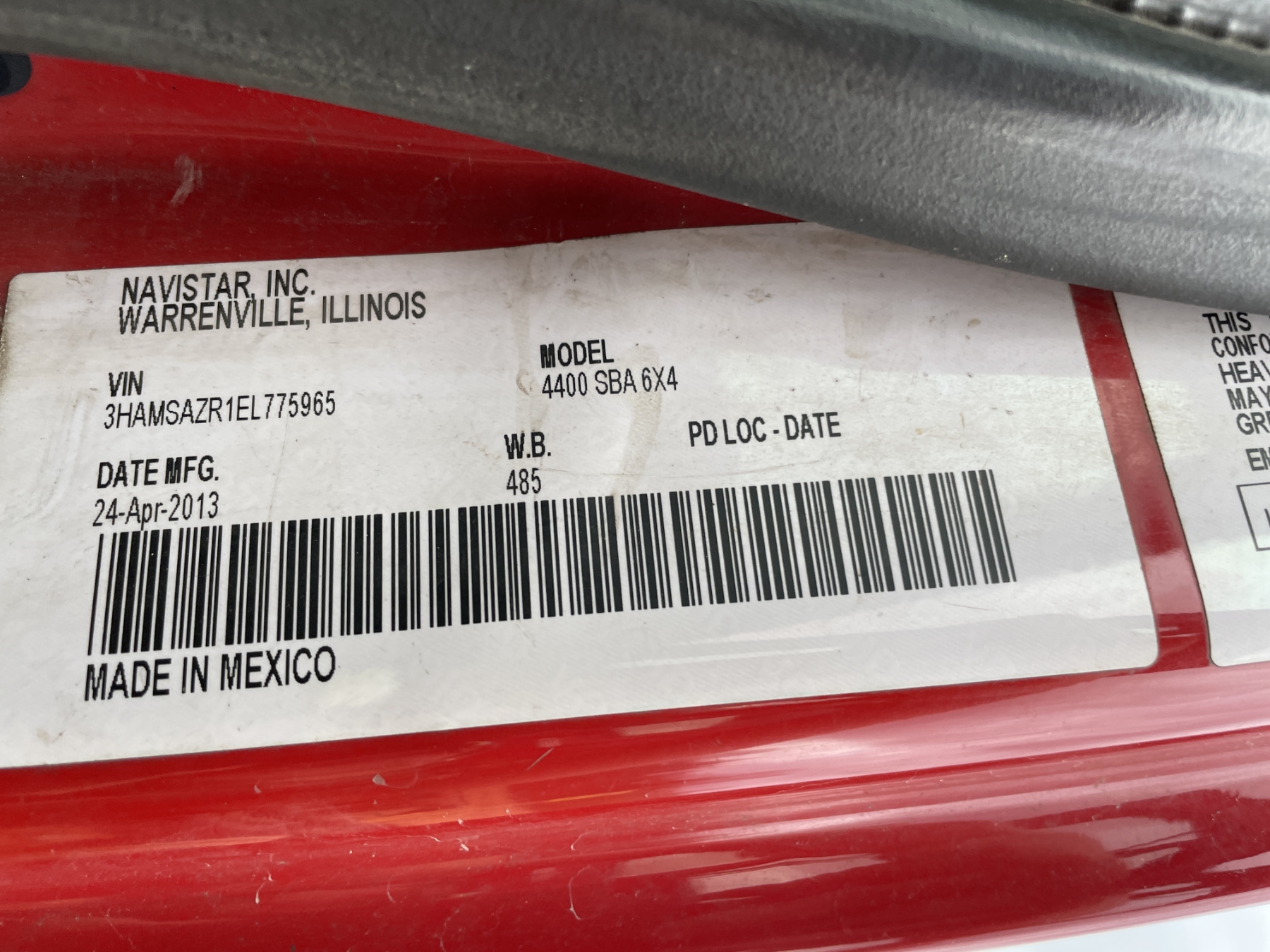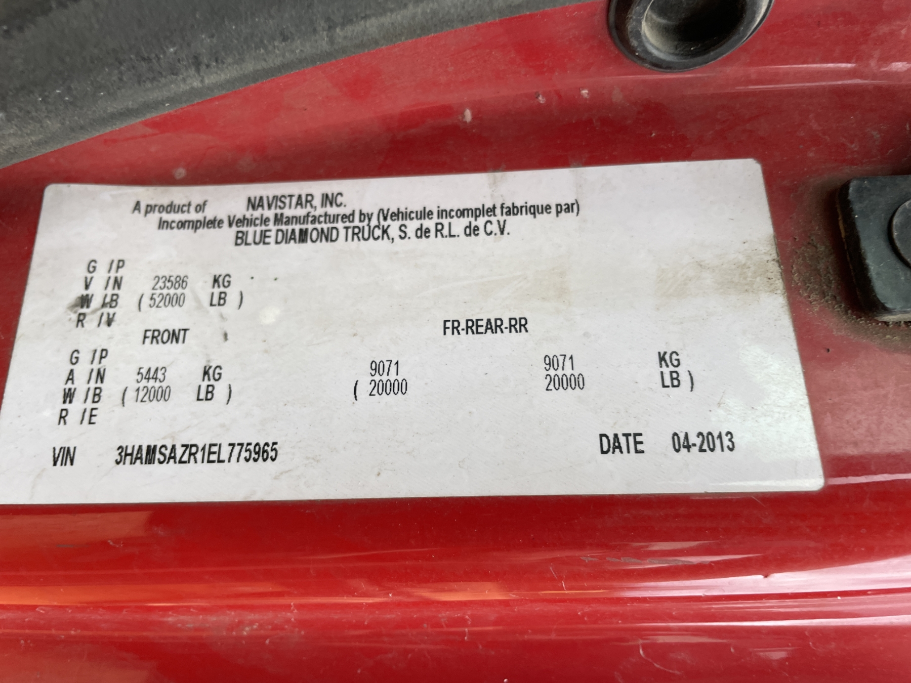 Vehicle ID Number: 3HAMSAZR1EL775965