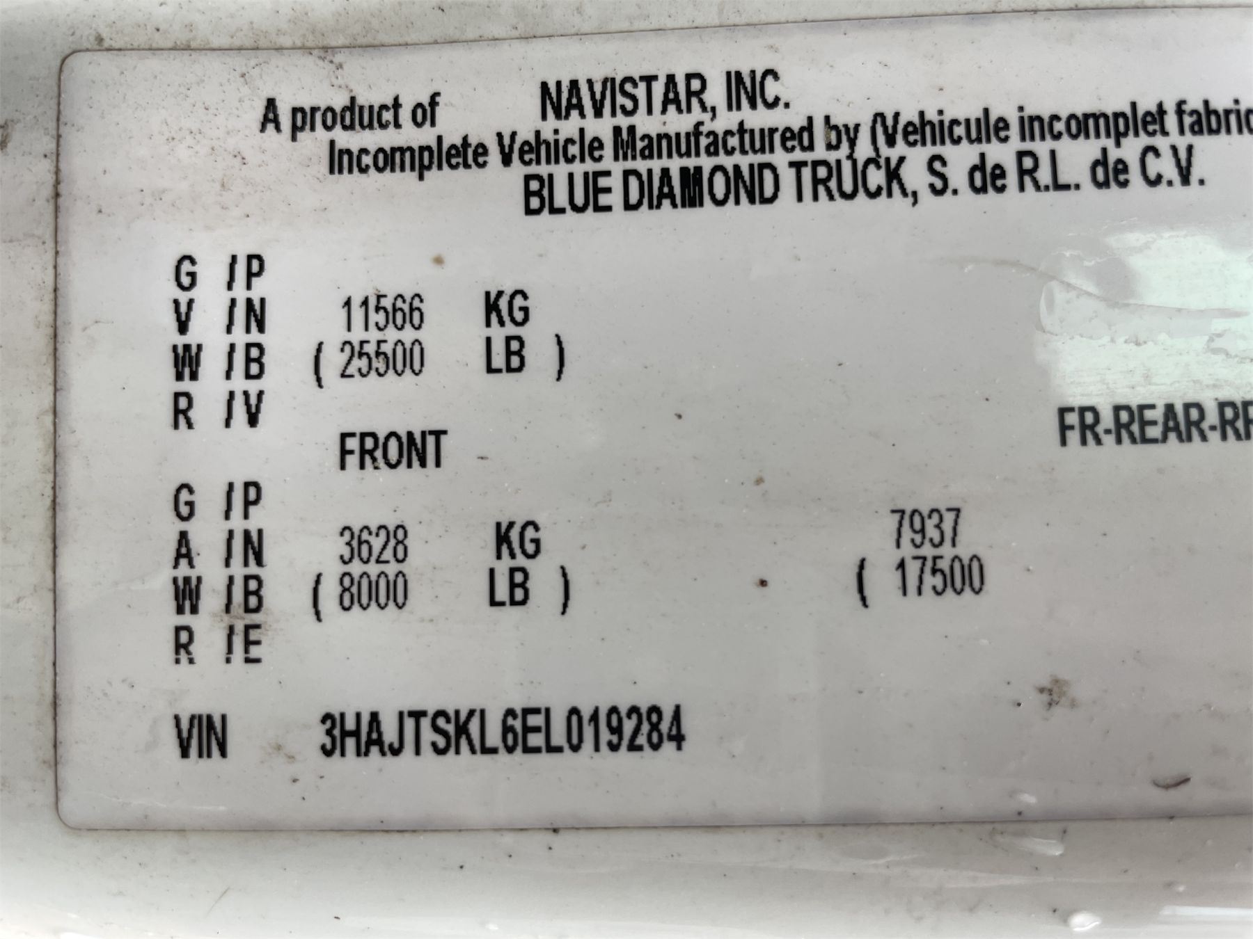 Vehicle ID Number: 3HAJTSKL6EL019284