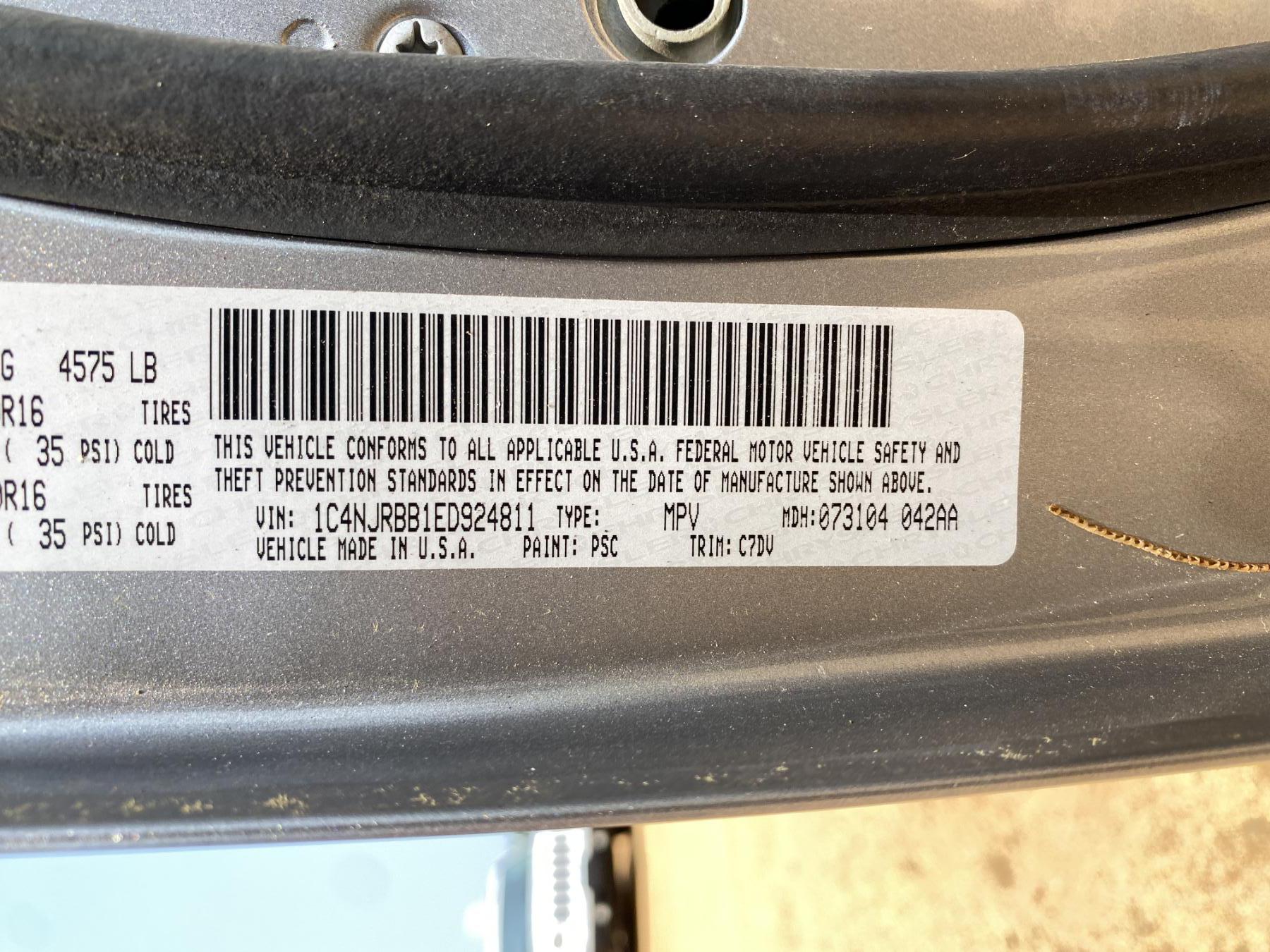 Vehicle ID Number: 1C4NJRBB1ED924811