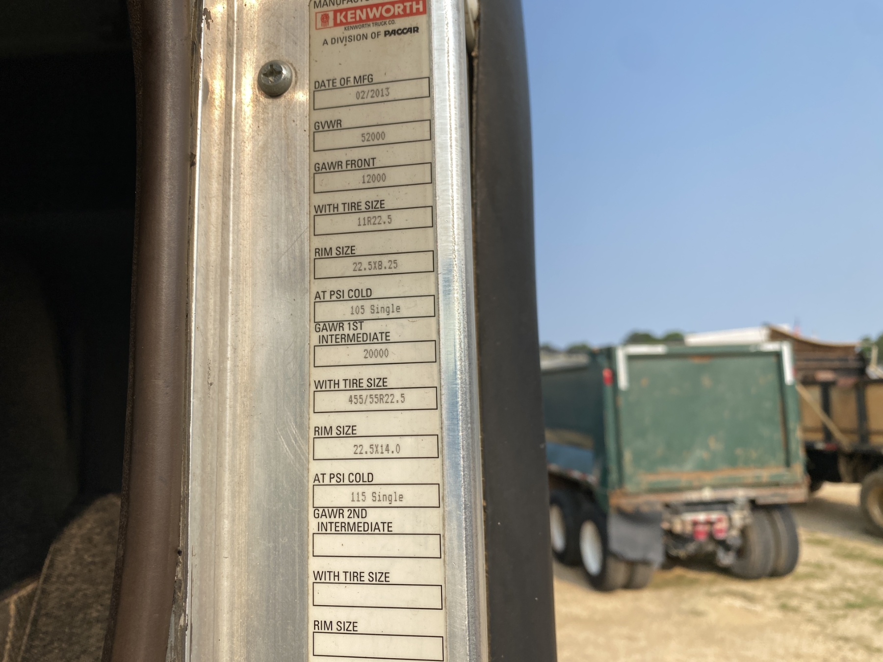 T/A, ext cab., 455 HP Paccar engine, 10 speed trans, 40K rears, air ride, 12K front, 195" W/B, wet kit, 11R22.5 tires