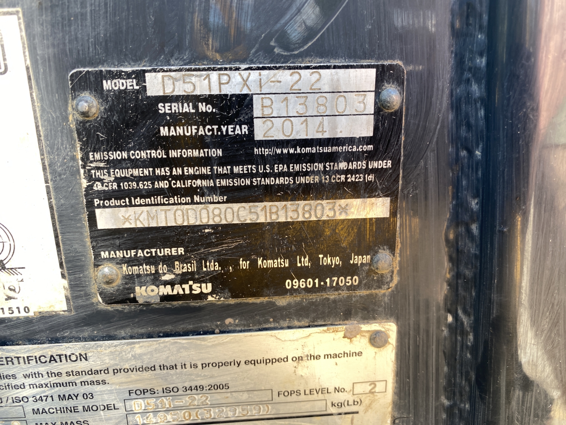 2014 KOMATSU D51PXi-22 Dozer / Crawler Tractor