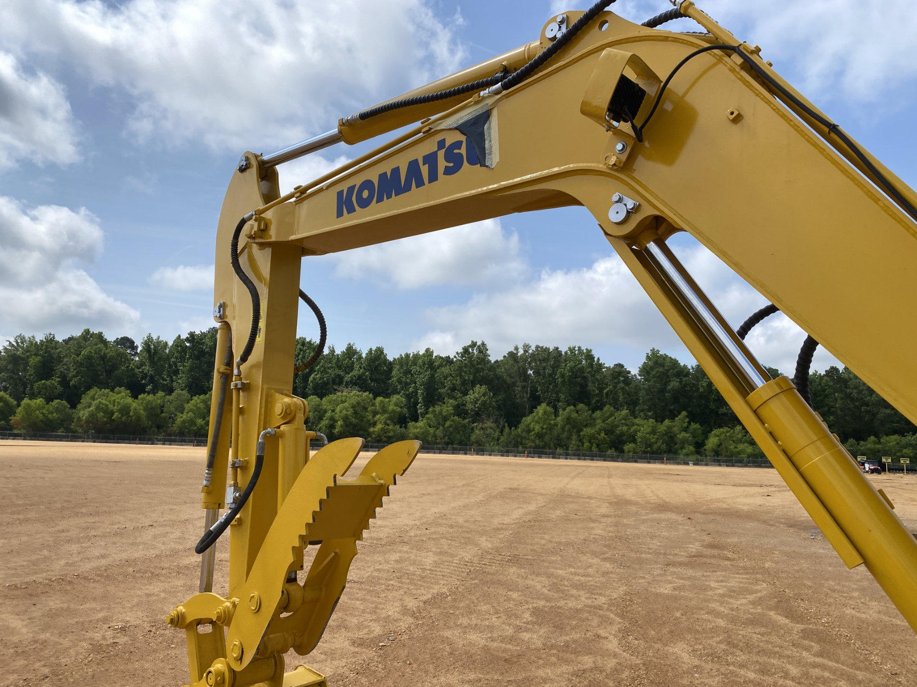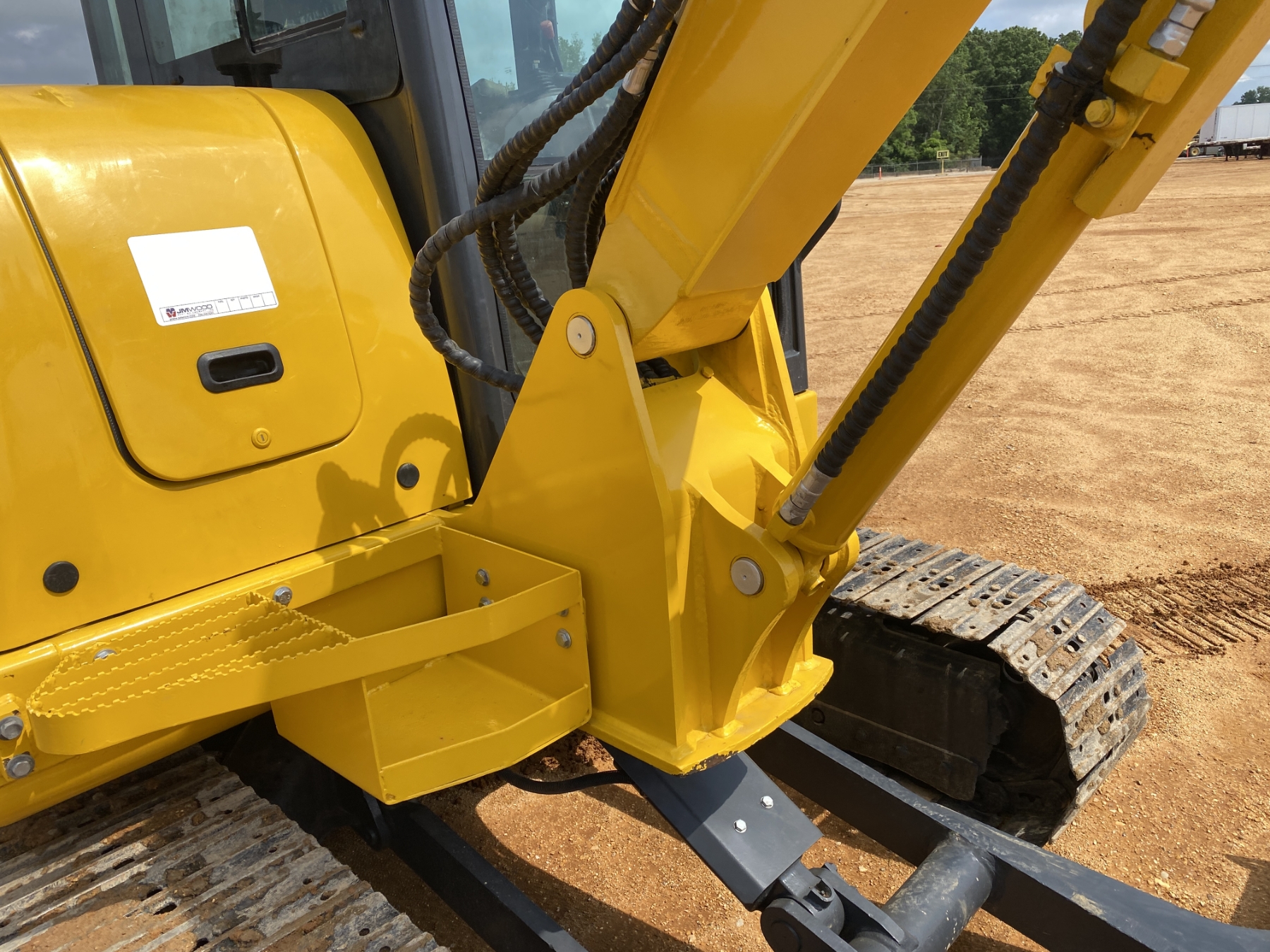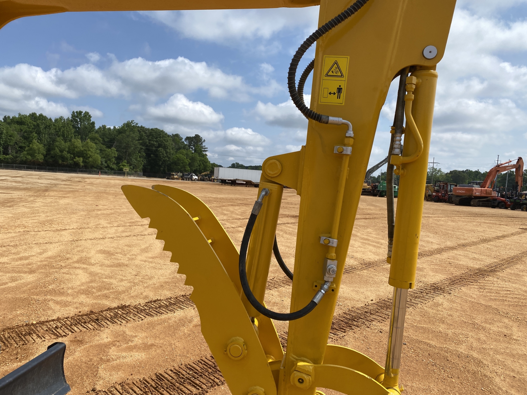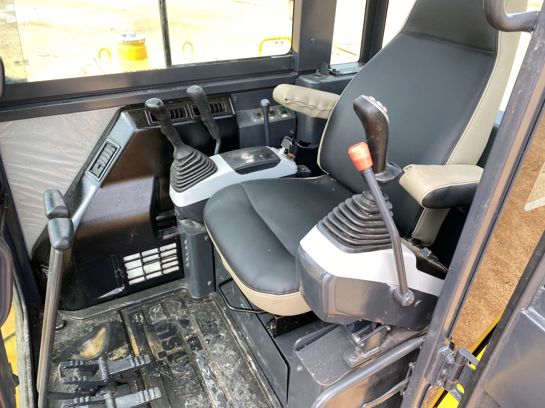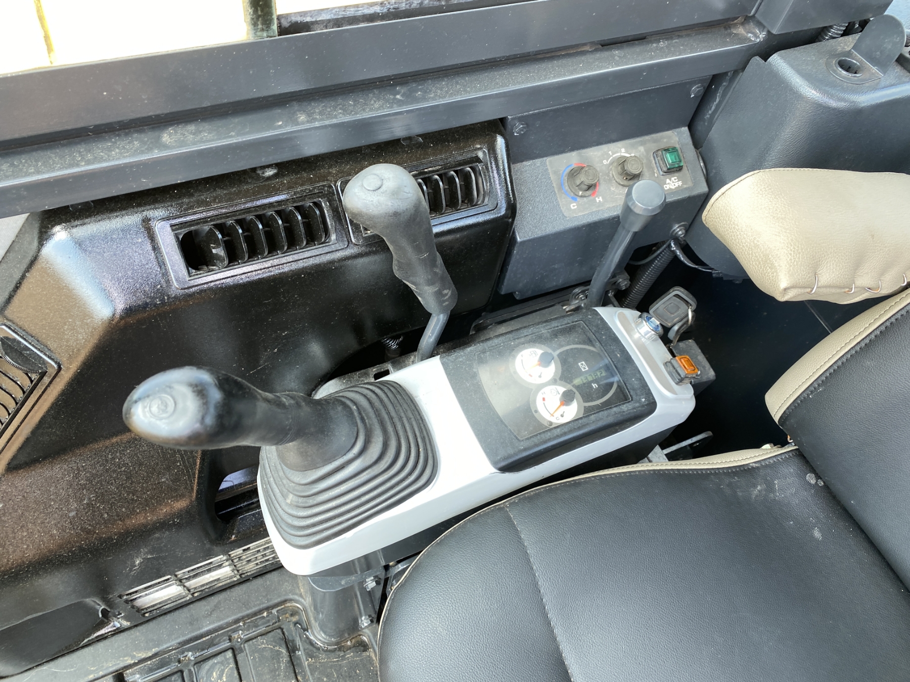 5' 6" stick, 30" bucket, hyd thumb, aux hyd, blade, cab, A/C