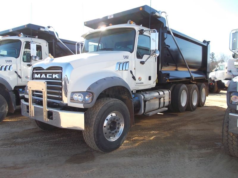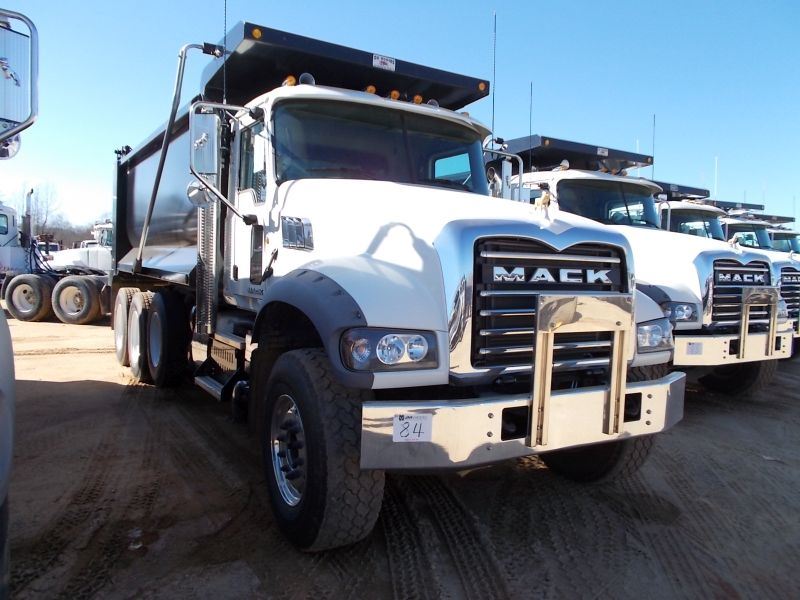 2014 MACK GRANITE GU713 TRI-AXLE DUMP, S/N 1M2AX0PC5EM021063, 425 HP MACK MP8 DIESEL ENG, 10 SPD TRANS, 44K REARS, 18K FRONT, ENGINE BRAKE, 16' HARD OX DUMP BODY, 21 CU YD CAP, HI LIFT TAILGATE, 11R24.5 REAR TIRES, 385/65R22.5 FRONT TIRES, DISC WHEELS, ODOMETER READING 10,030 MILES (COUNTY OWNED)