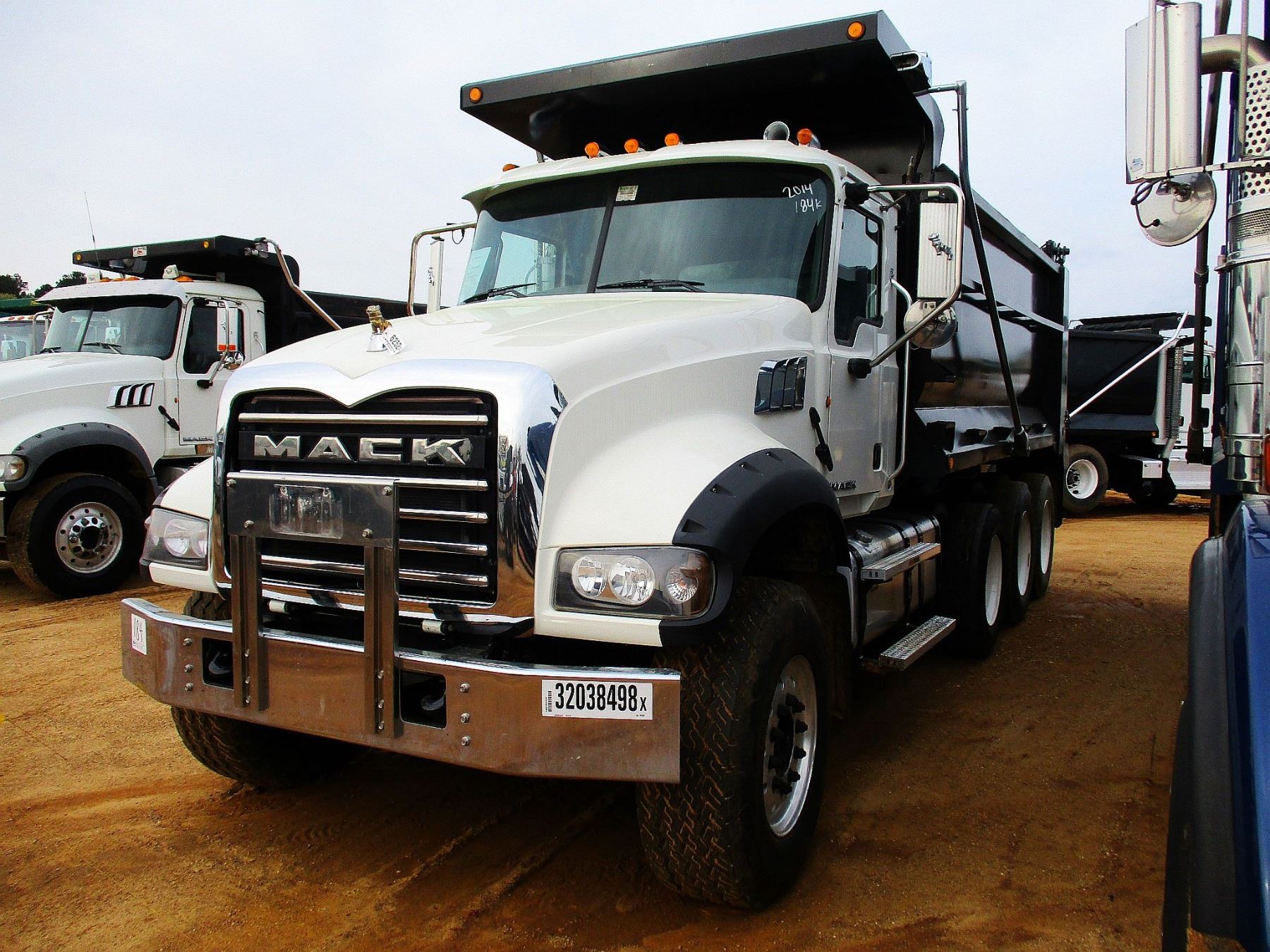 2014 MACK GU713 DUMP, VIN/SN:1M2AX09C2EM019030 - 425 HP MACK MP 8 DIESEL ENGINE, 10 SPEED TRANS, 44K REARS, 18K FRONT, 16' HARD OX DUMP BODY, 11R24.5 REAR TIRES, 385/65R22.5 FRONT TIRES, ODOMETER READING 184,639 MILES (REBUILT TITLE)