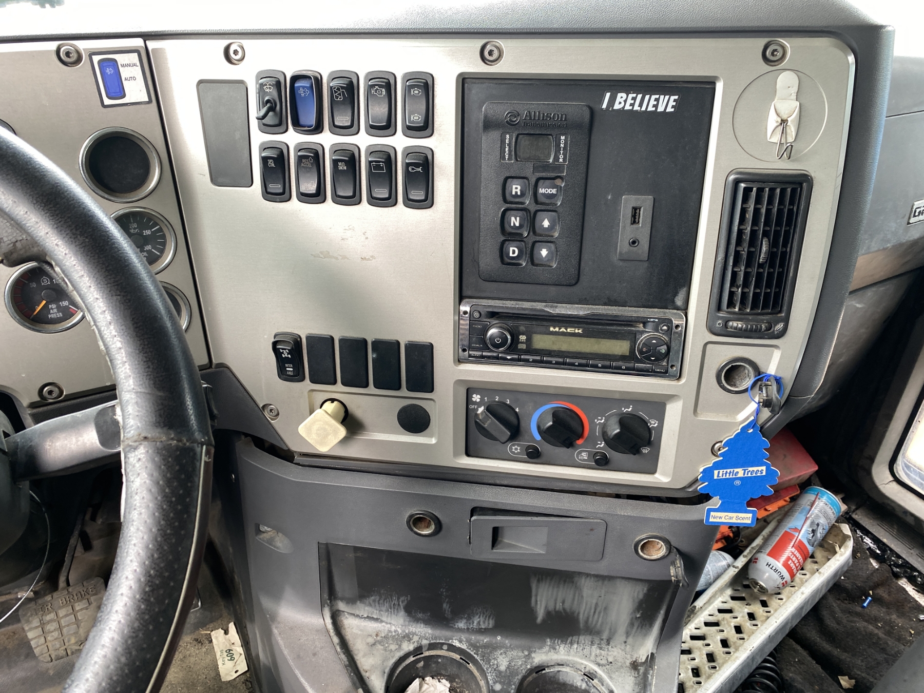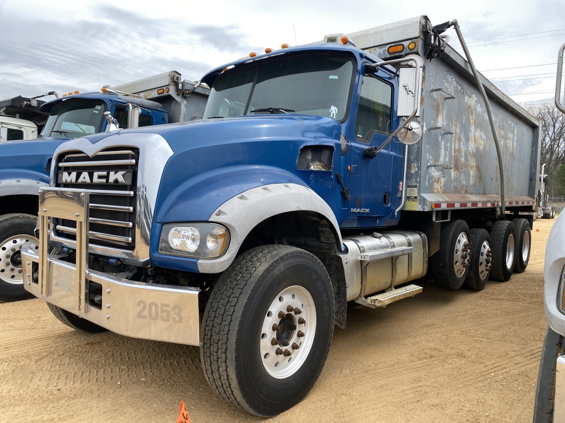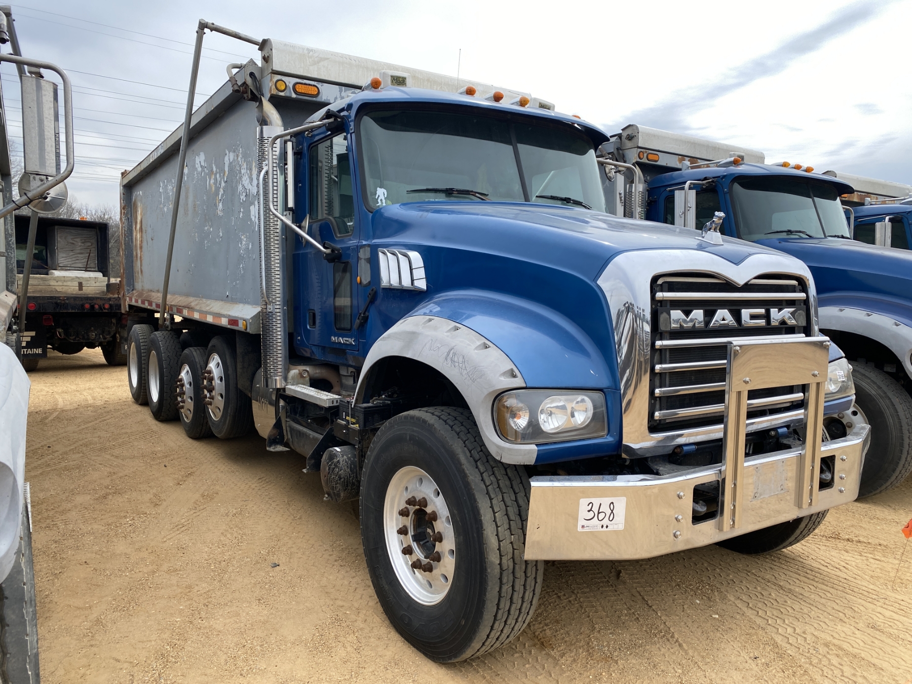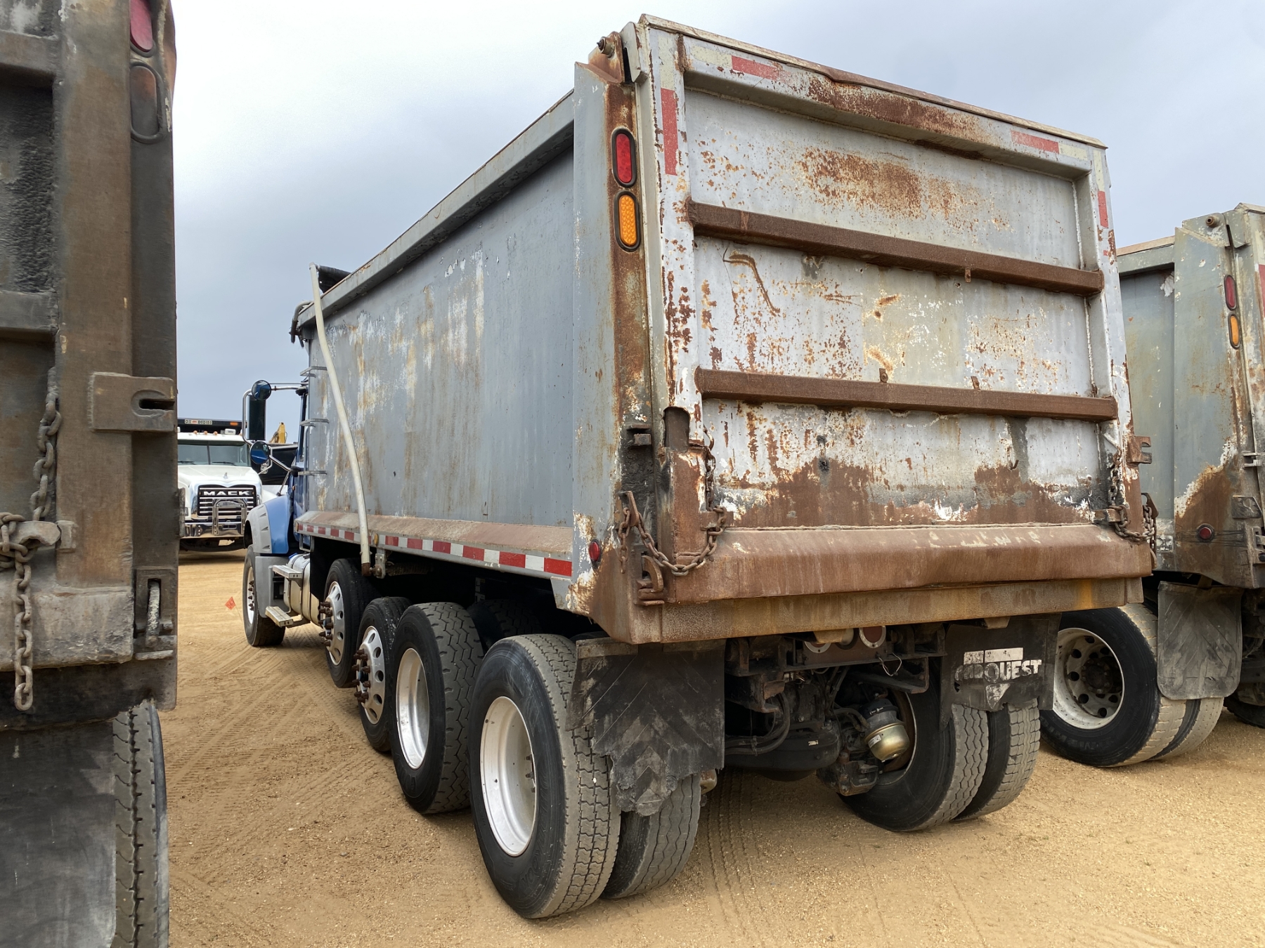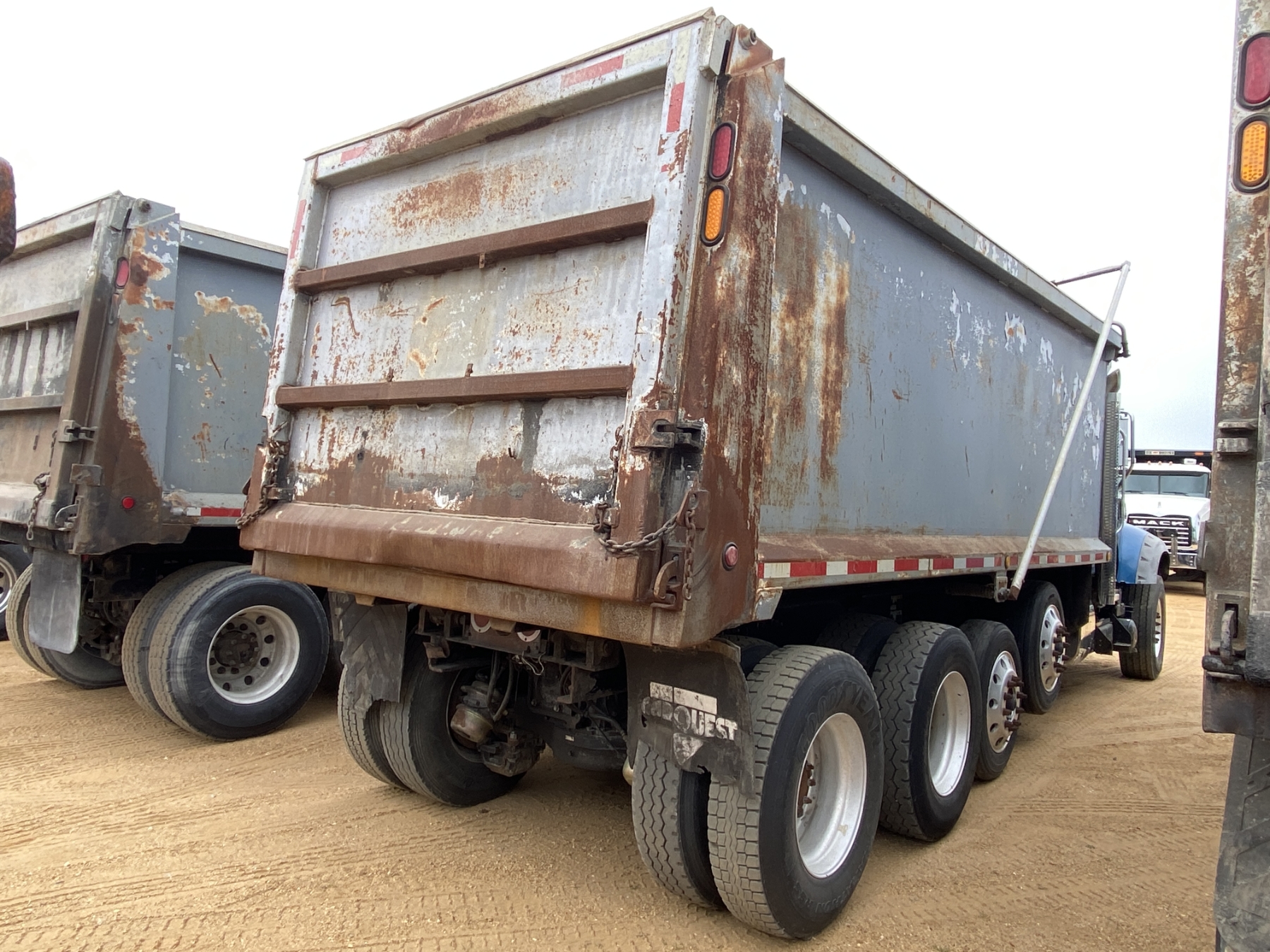 Quad Axle, Mack MP7-345 engine, Allison A/T, 44K rears, 18K front, 19’ Ox body, 11R22.5 rear tires, 315/80R22.5 front tires, all alum