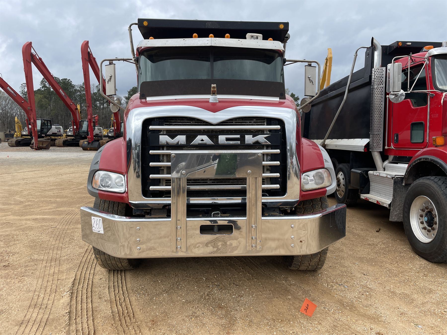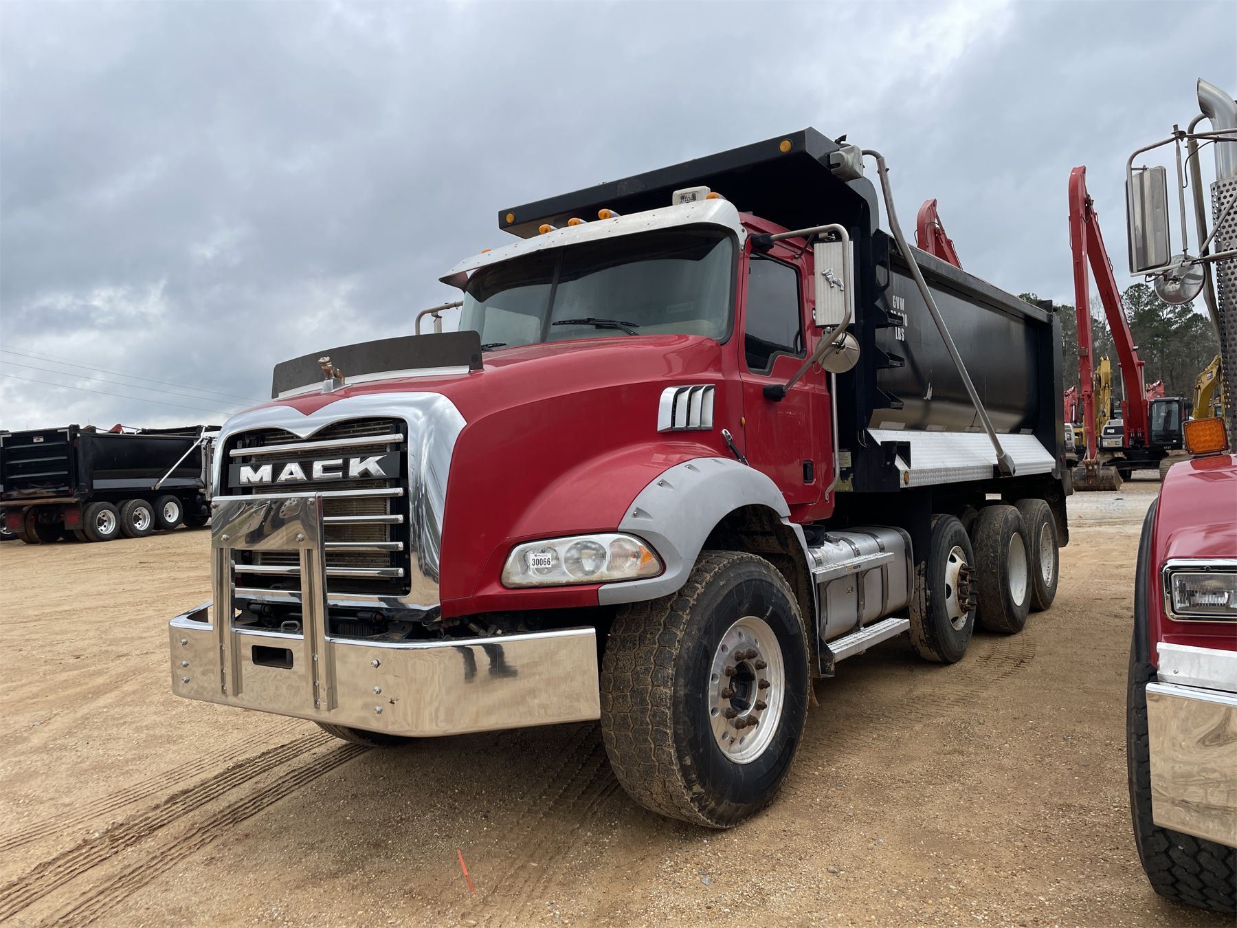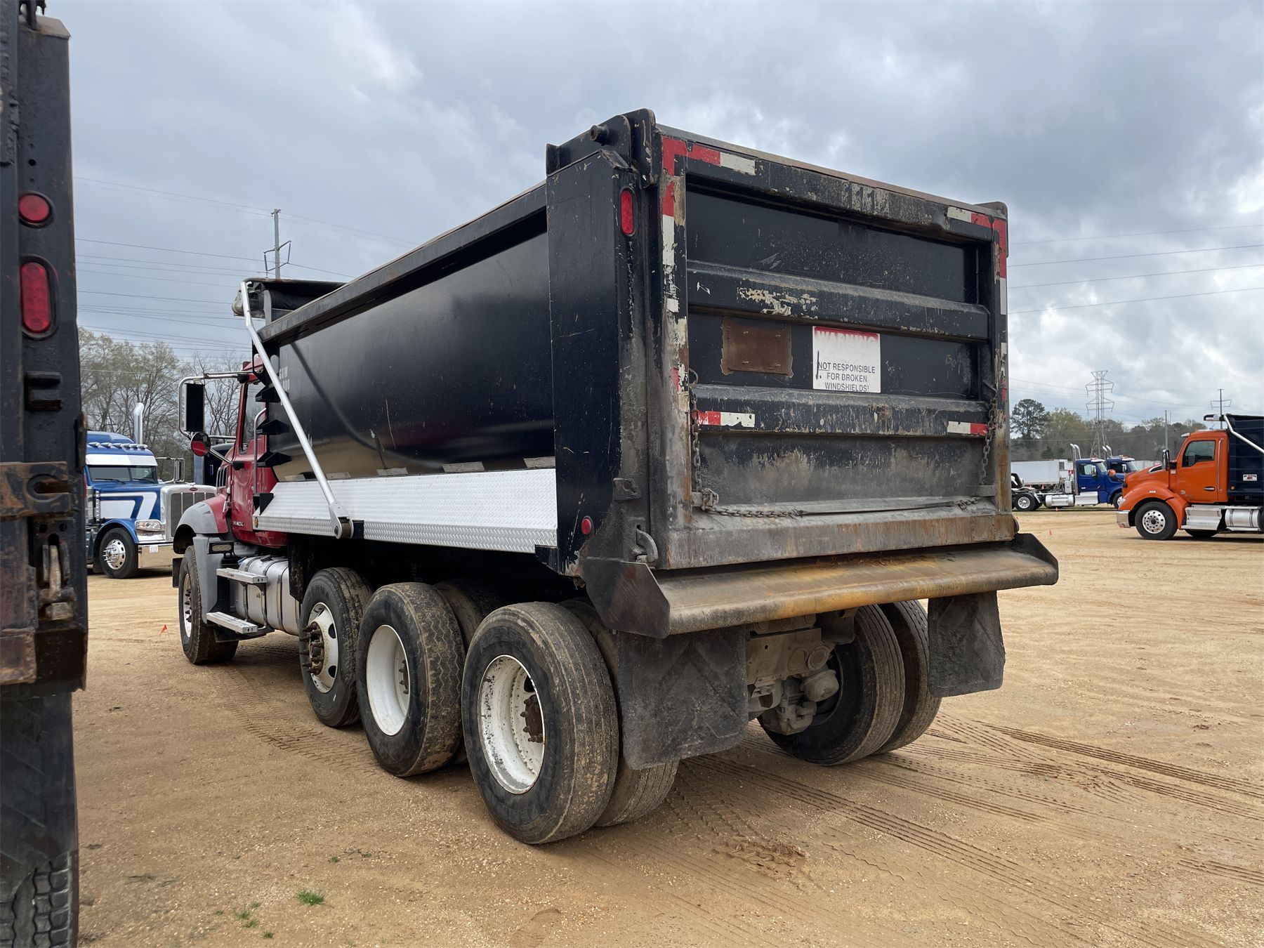 Tri Axle, 405 HP Mack MP7 engine, 10 speed trans, 44K rears, 20K front, 16' Hard Ox body, 11R22.5 rear tires, 425/65R22.5 front tires