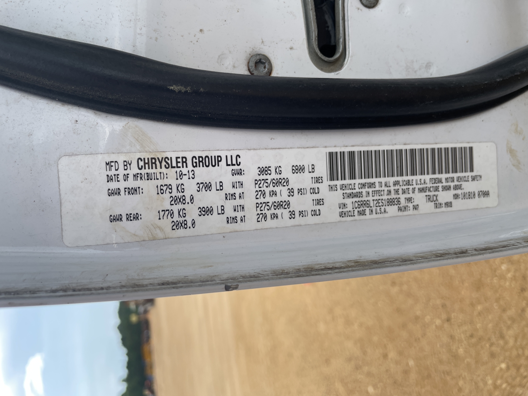 Vehicle ID Number: 1C6RR6LT2ES188836