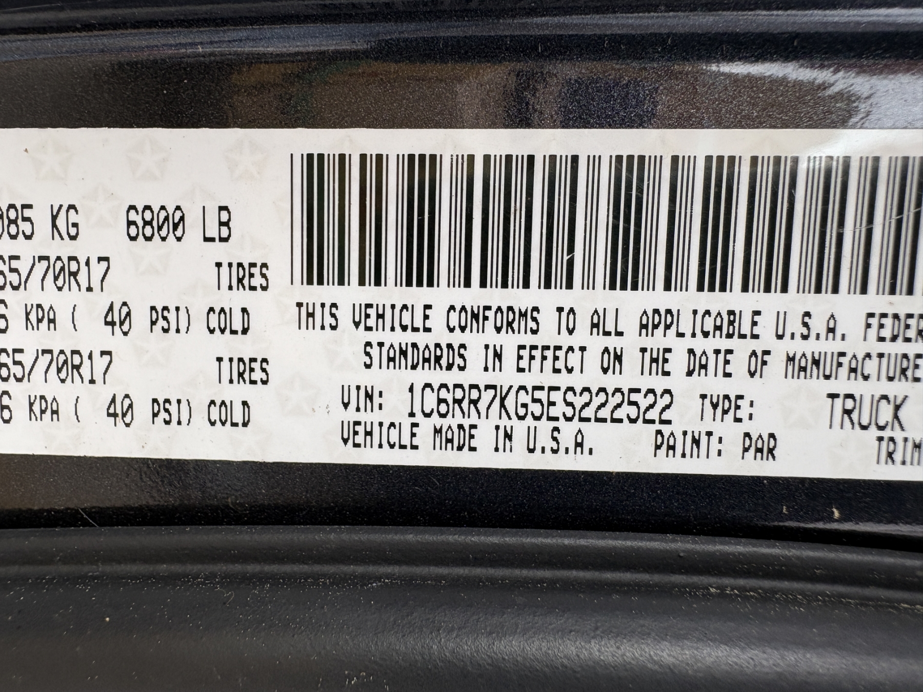 Vehicle ID Number: 1C6RR7KG5ES222522